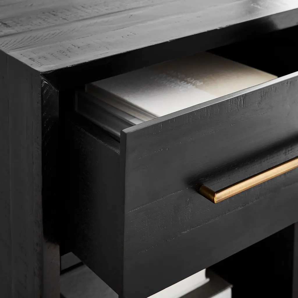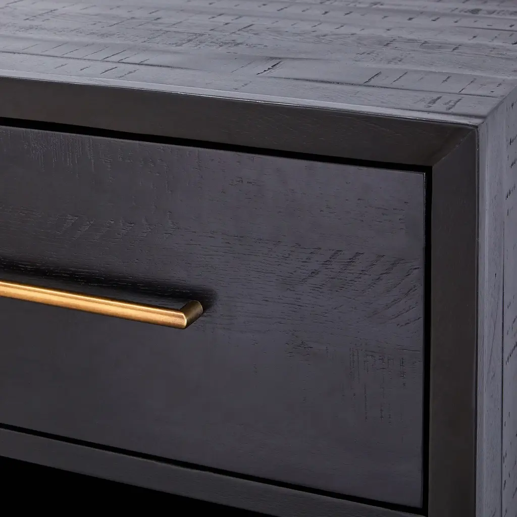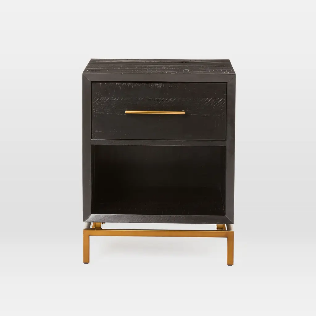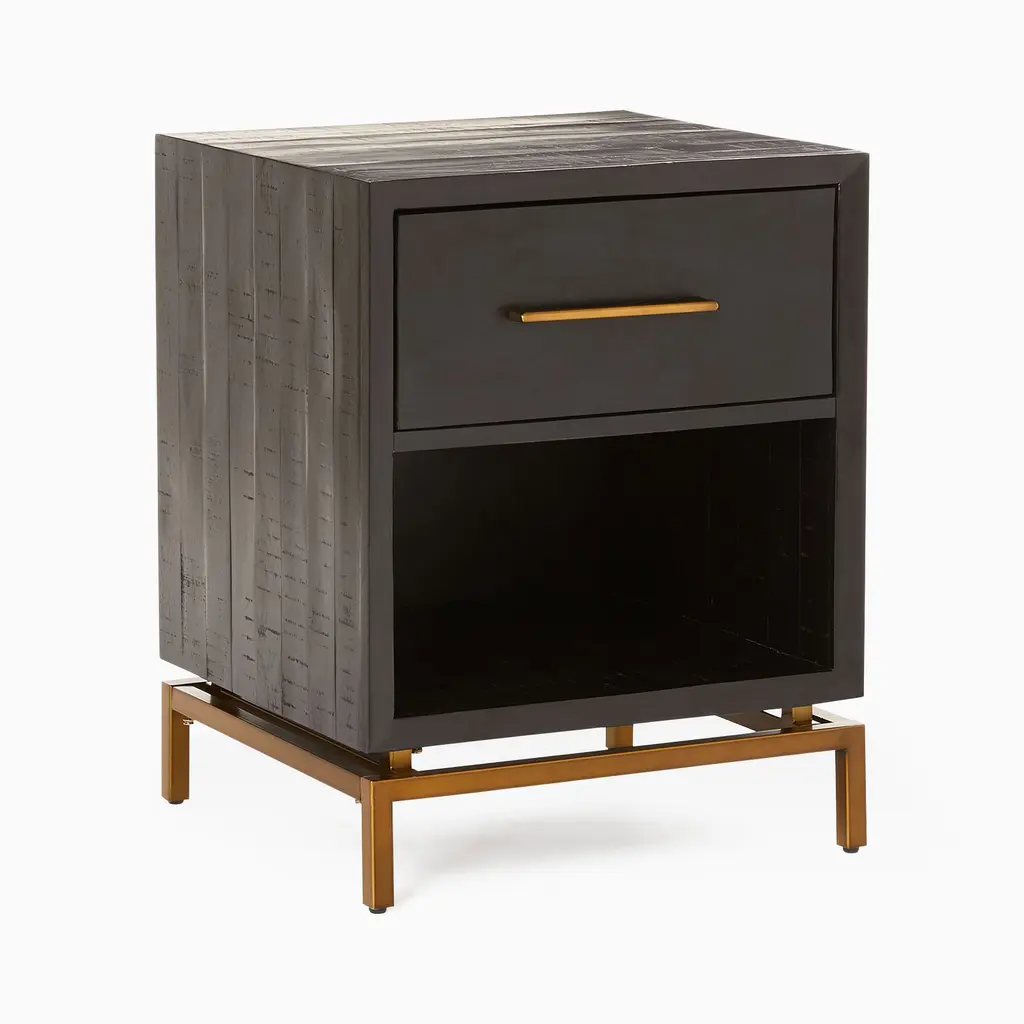 A chic way to store your nightly necessities. Metal legs look sleek and sculptural. Brass-finished pulls add a nice contrast. The solid acacia wood is strong and durable.