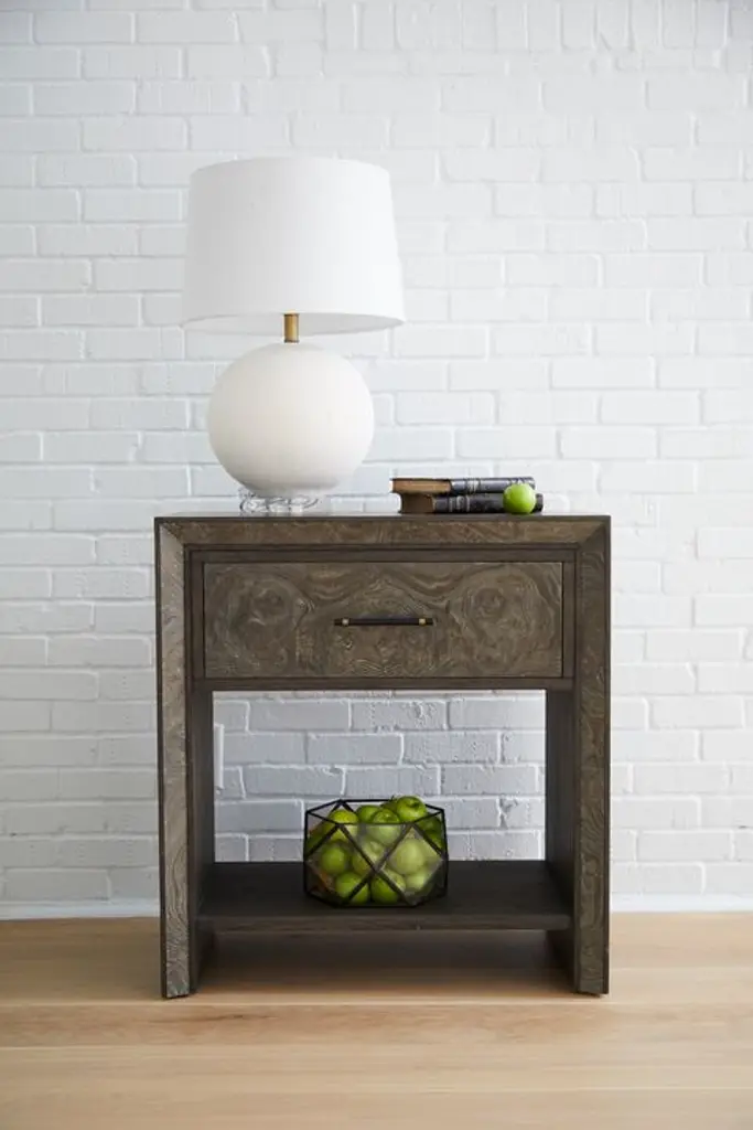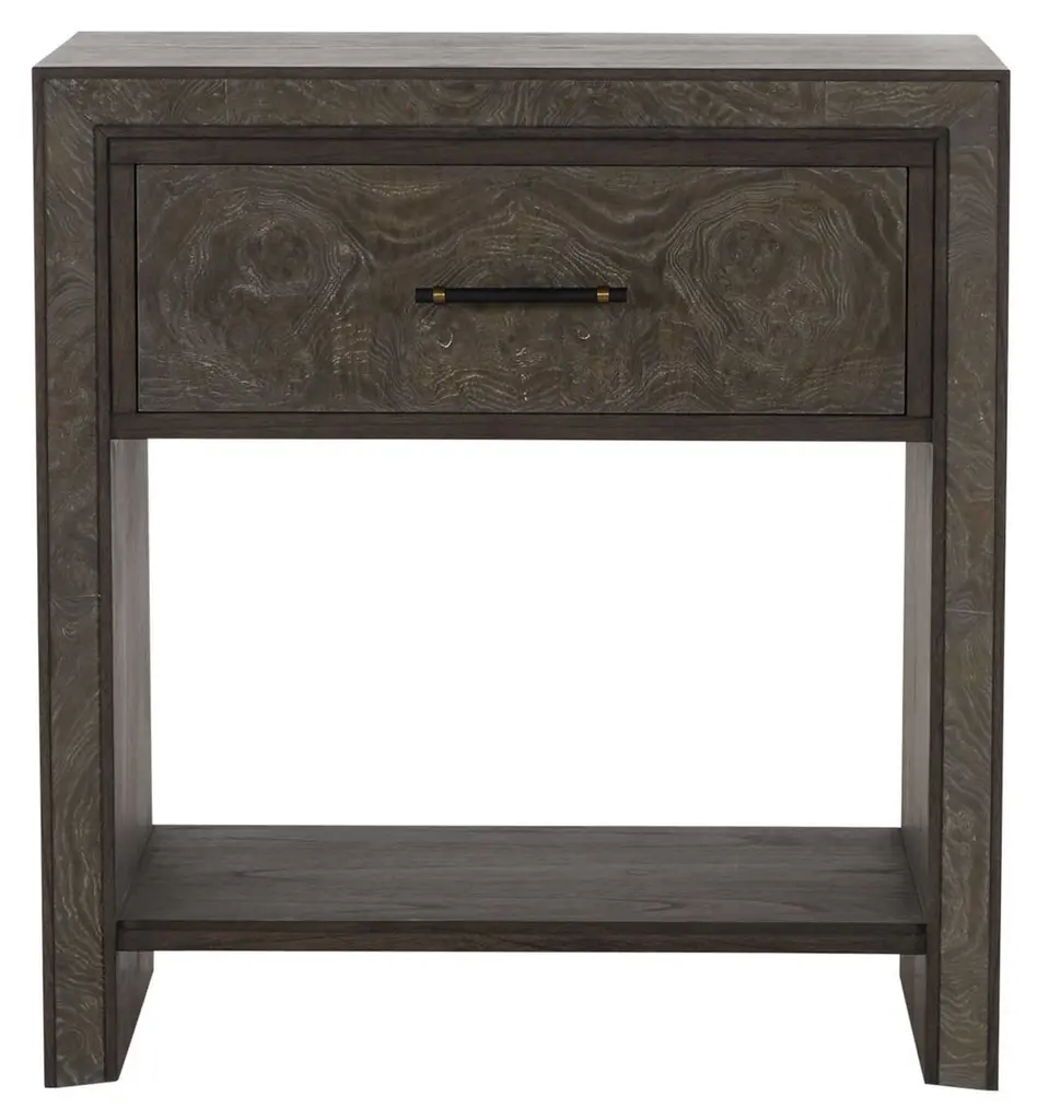 Burl veneer has long signified glamour, and this nightstand shows why. The clean lines and smooth surfaces allow the burl's lavish figuring to take center stage. Along with a drawer, the nightstand has a convenient shelf.