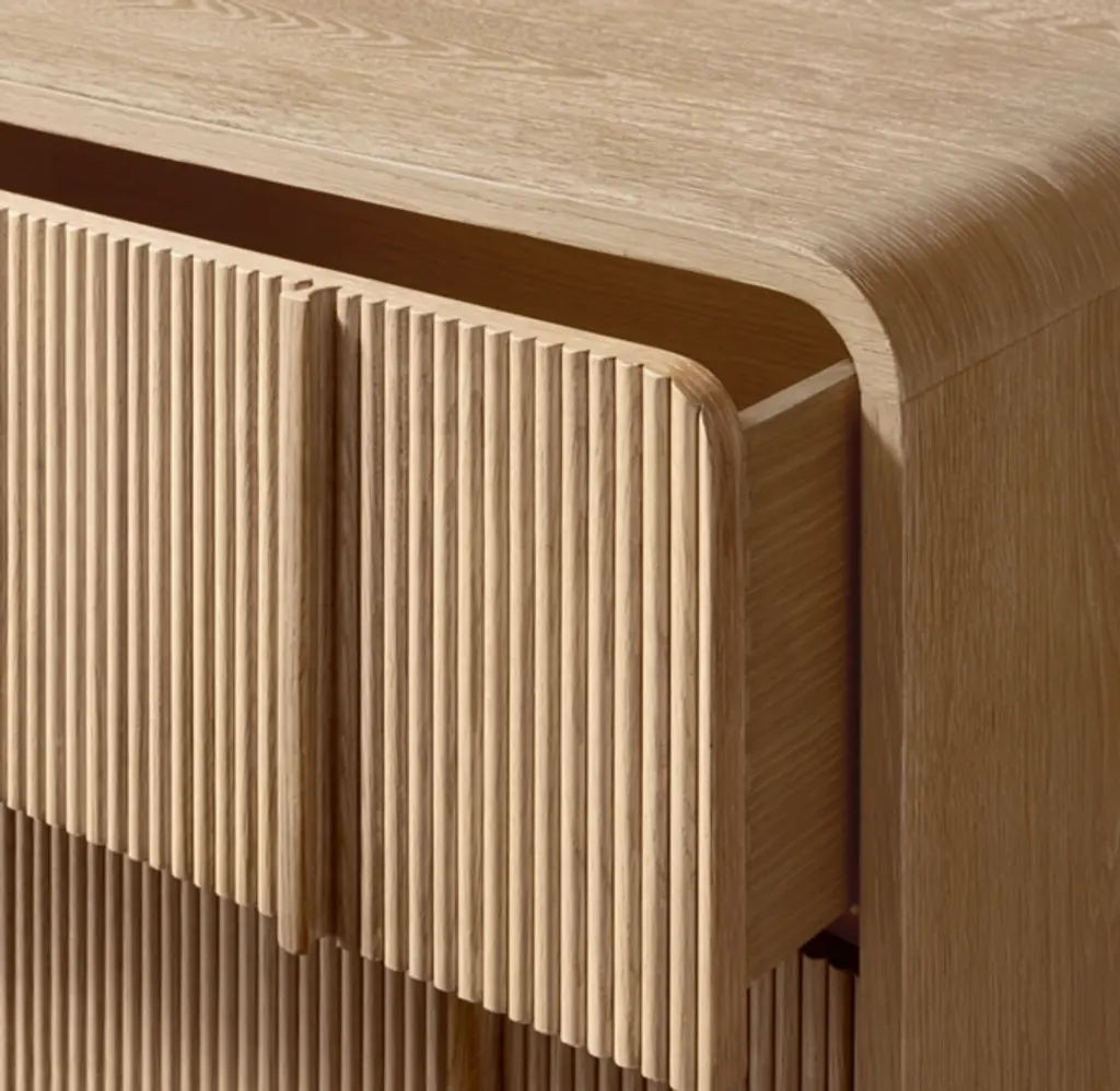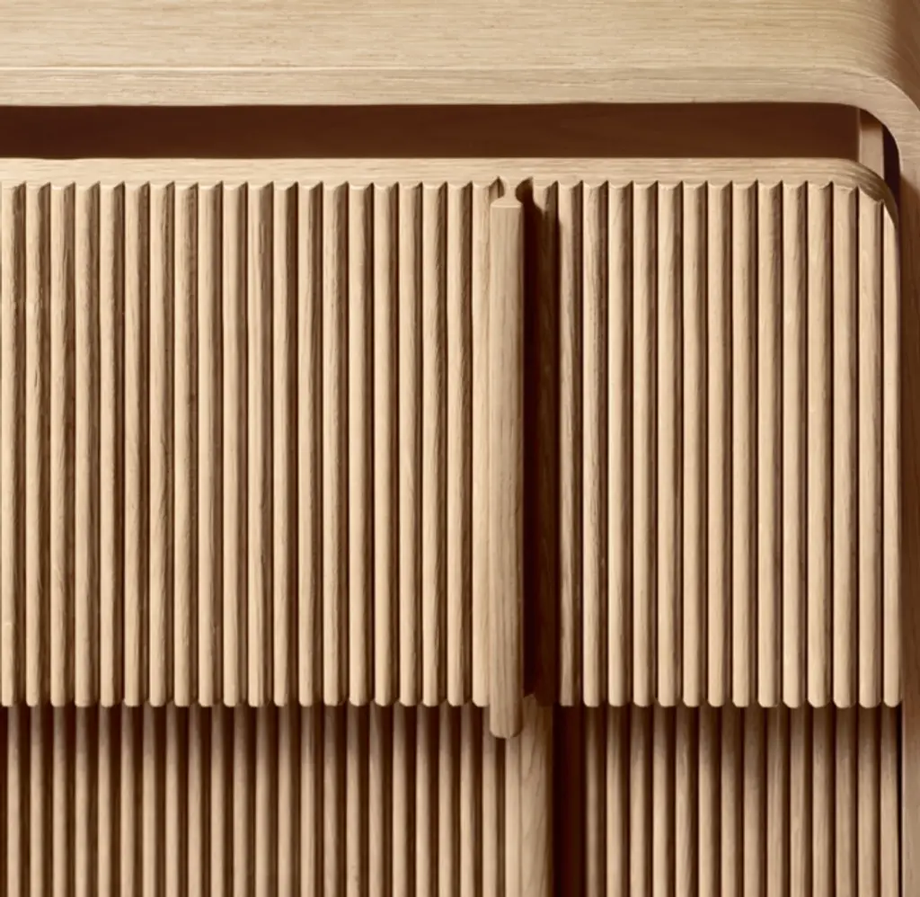 Artisan crafted of American white oak, Alora by California designer Lindye Galloway is a dynamic blend of sleek planes and radius curves. Smooth waterfall edges and a wire-brushed finish highlight the frame's continuous woodgrain pattern, while vertical solid oak reeding adds a textural counterpoint. SHOP THE ENTIRE COLLECTIONEXPLORE ALL REEDED COLLECTIONS