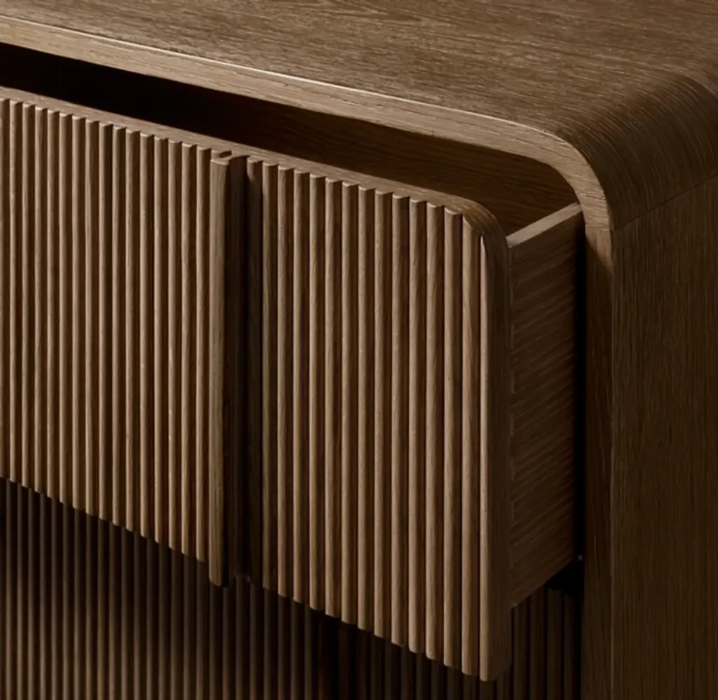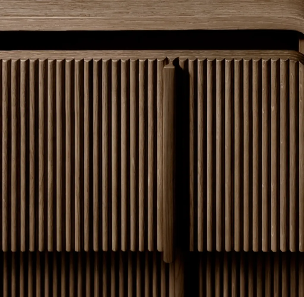 Artisan crafted of American white oak, Alora by California designer Lindye Galloway is a dynamic blend of sleek planes and radius curves. Smooth waterfall edges and a wire-brushed finish highlight the frame's continuous woodgrain pattern, while vertical solid oak reeding adds a textural counterpoint. SHOP THE ENTIRE COLLECTIONEXPLORE ALL REEDED COLLECTIONS