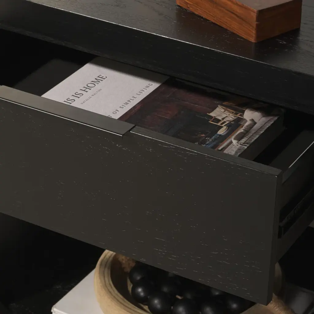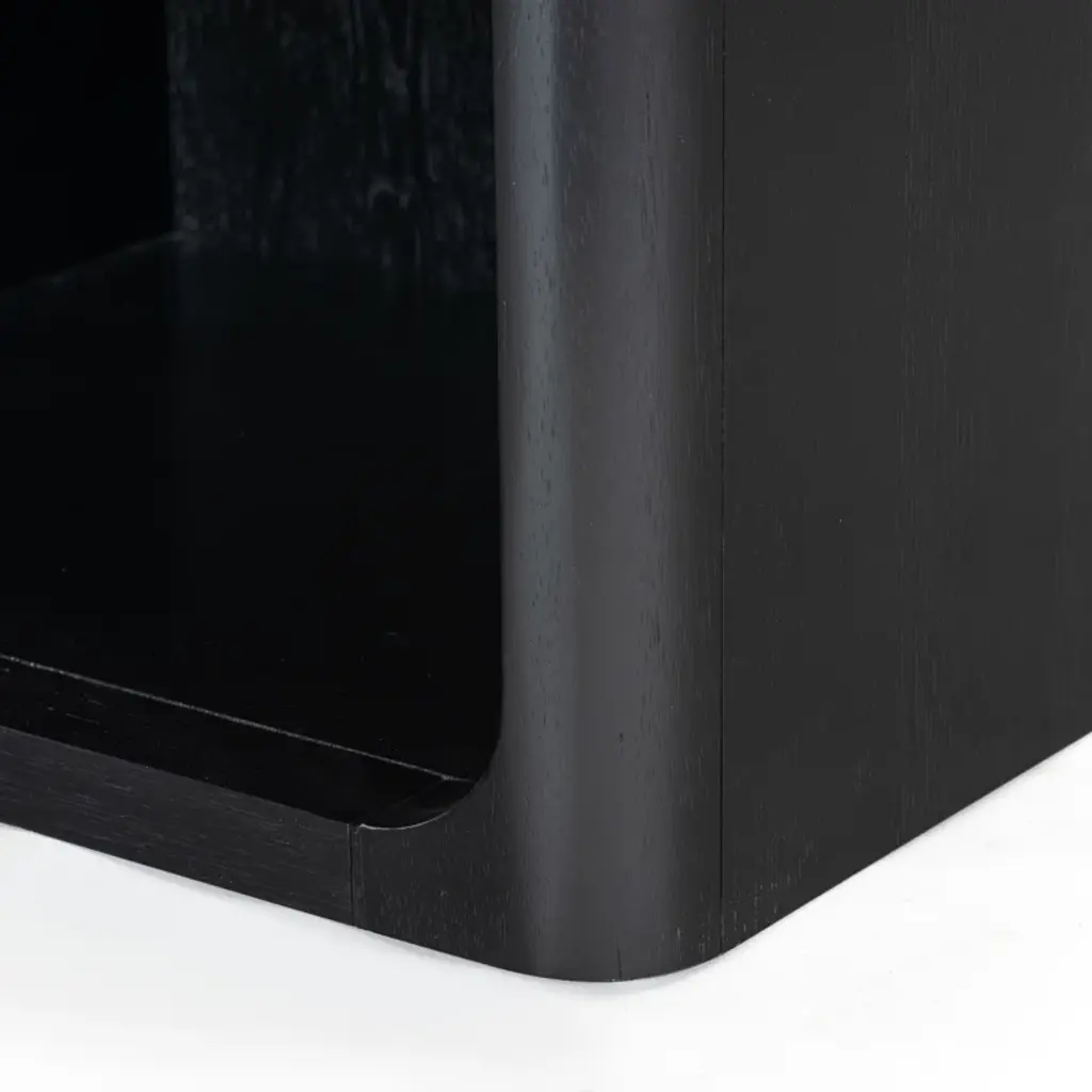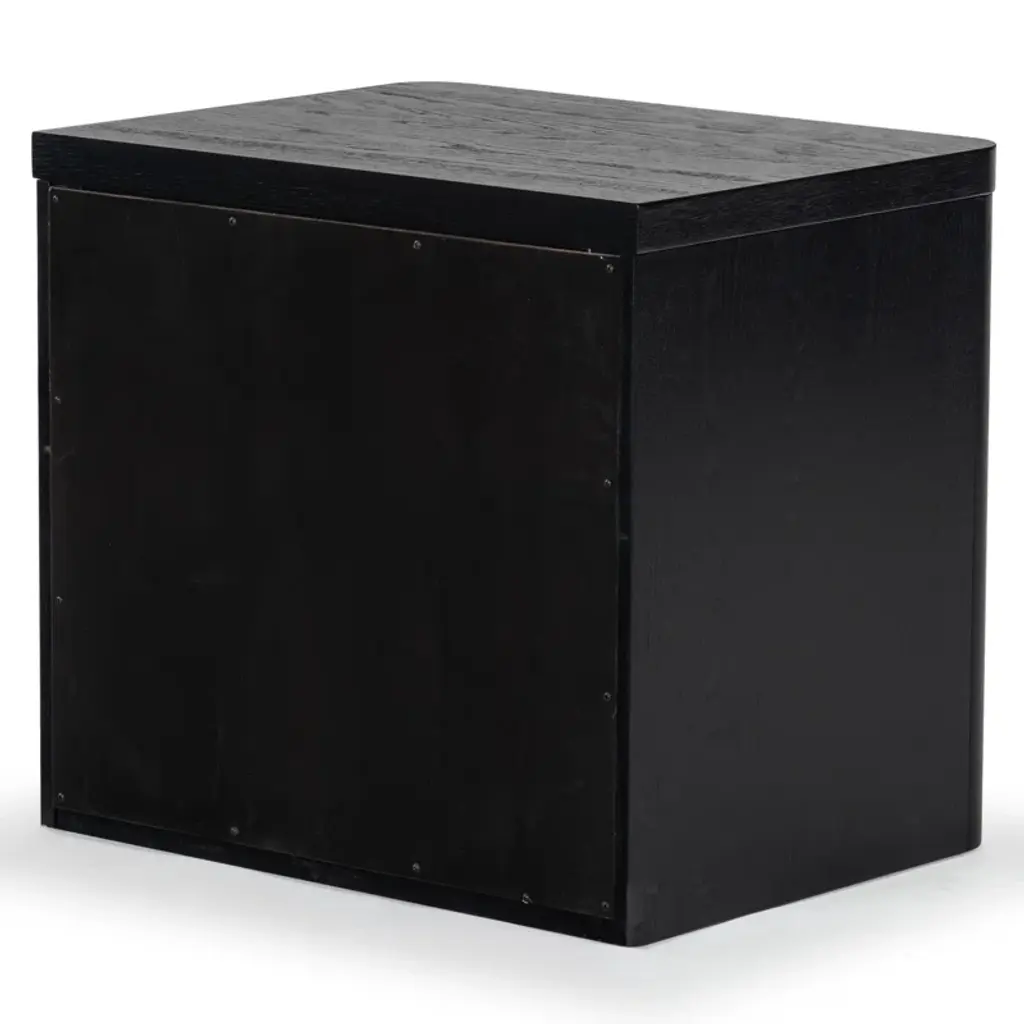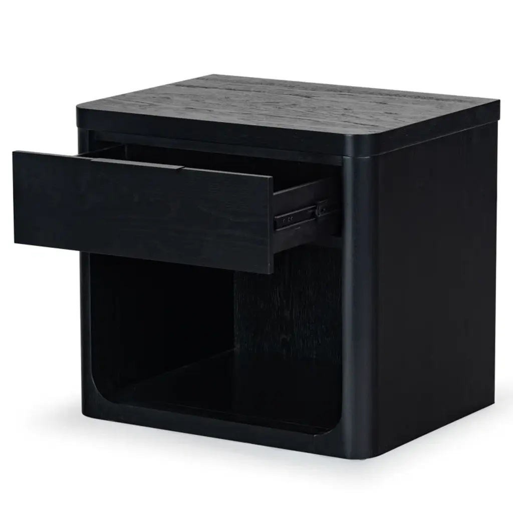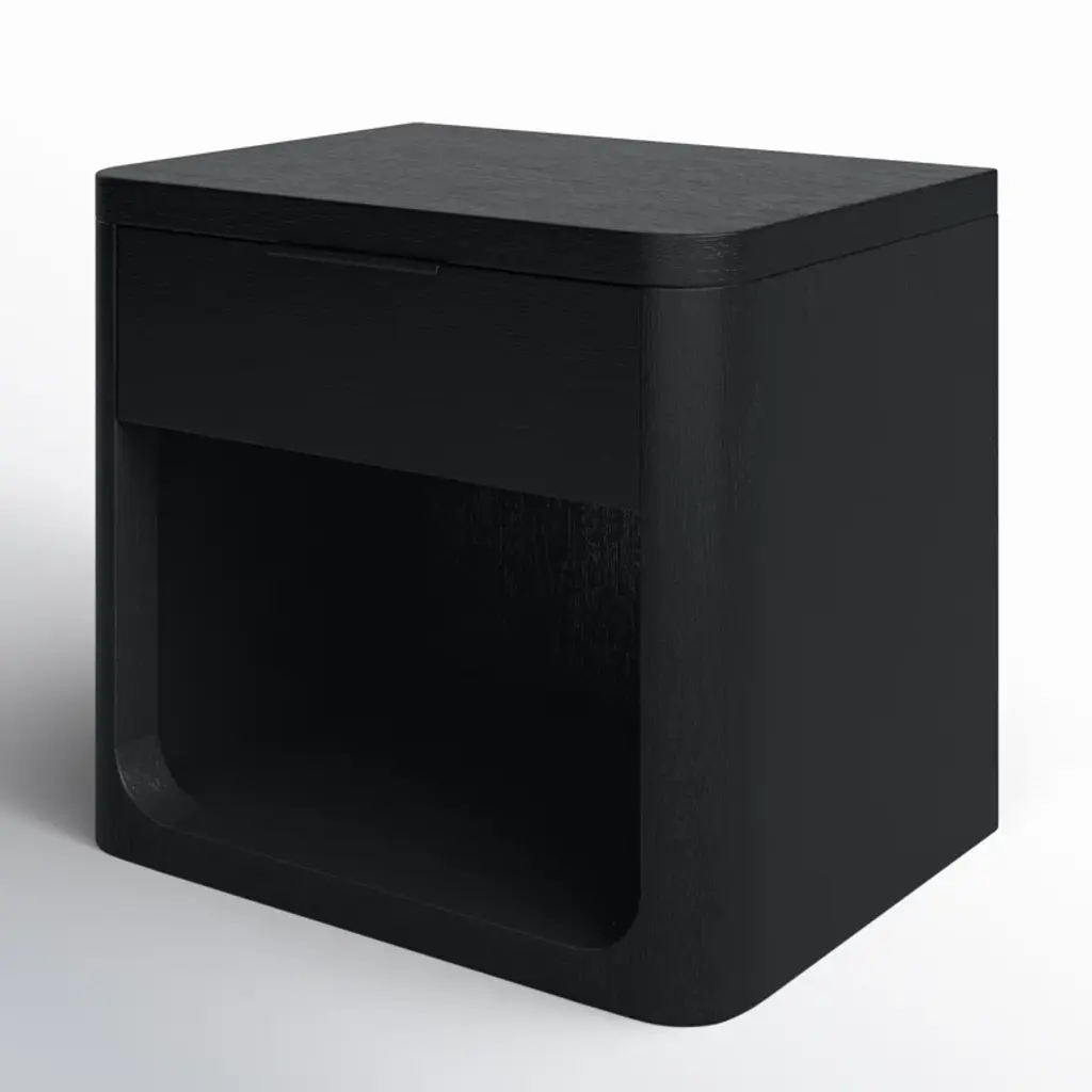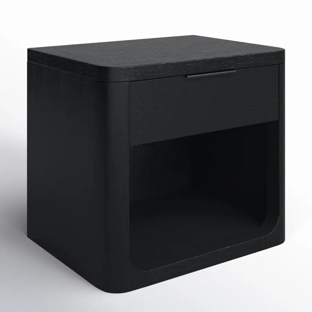 Introducing the RAYLIE 1-Drawer Wood Nightstand, an epitome of contemporary elegance finished in bold black. Crafted from robust rubberwood and a tasteful oak veneer, this sleek piece adds just the right touch of glamour and functionality to your bedroom. Featuring a generously sized drawer and supported by sturdy iron, this piece is perfect for convenient bedside storage. The black perfect finish contrasts seamlessly with any bedroom color palette, offering a stylish yet subtle enhancement to your space. Stay organized and polished with the RAYLIE 1 Drawer Wood Nightstand. Experience elegance that doesn't compromise utility.