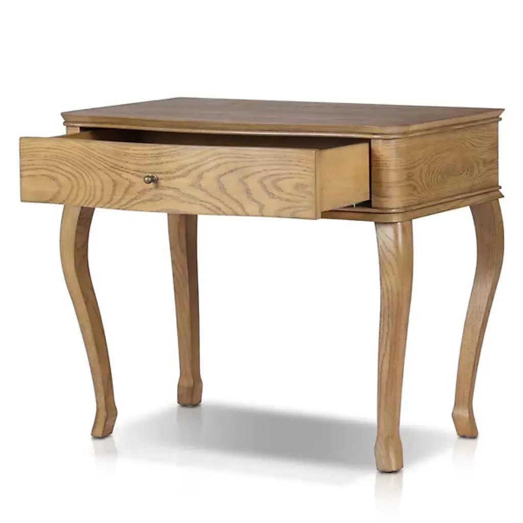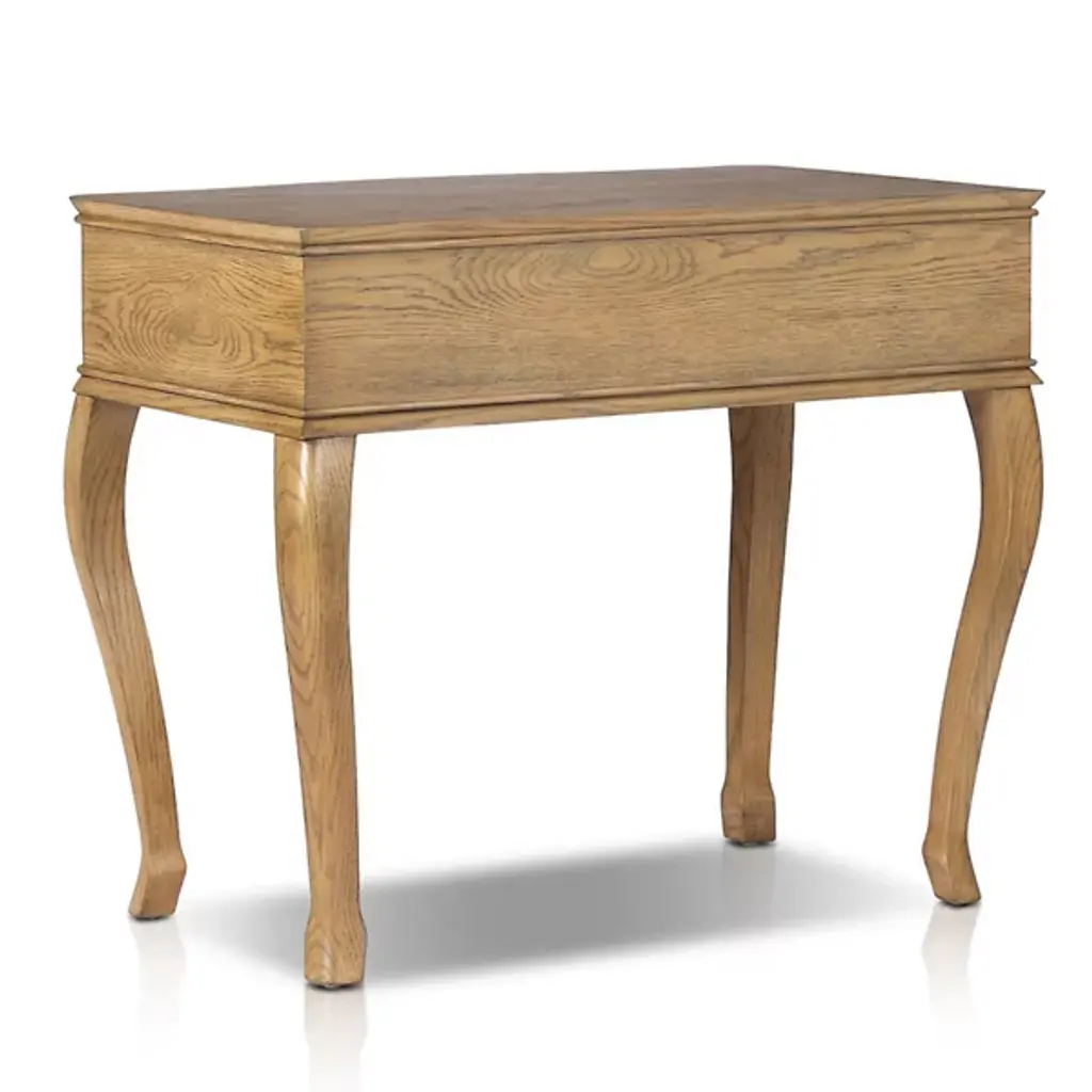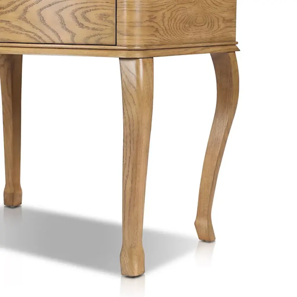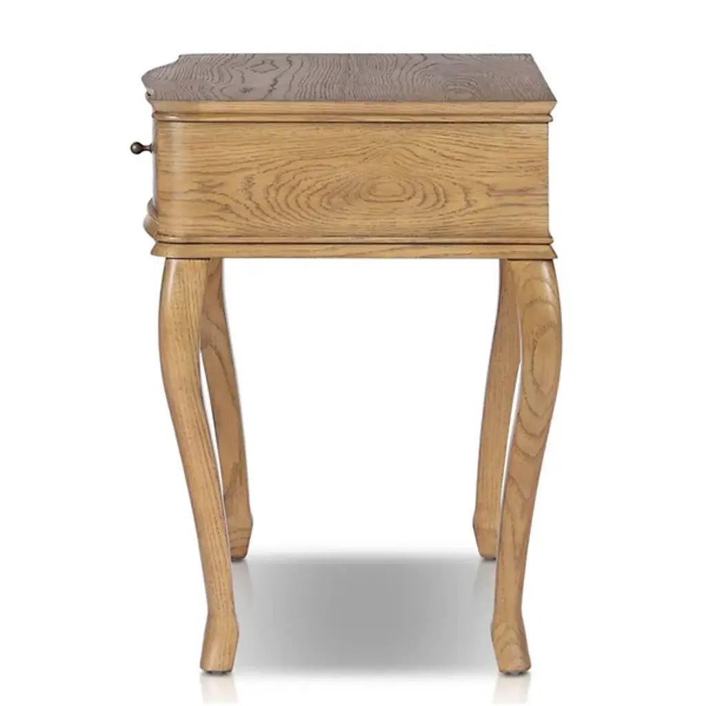 The Amber Lewis x Four Hands Harry Nightstand updates traditional cabriole legs with a streamlined approach that maintains historical references while feeling utterly current. Delicate beading around the perimeter introduces shadow lines that emphasize craftsmanship and quality construction. The oak's natural grain variations provide organic patterning that enhances the nightstand's presence. A single brass button knob offers just enough metallic contrast without competing with the wood's natural beauty. This bedside essential balances graceful curves with practical storage considerations.