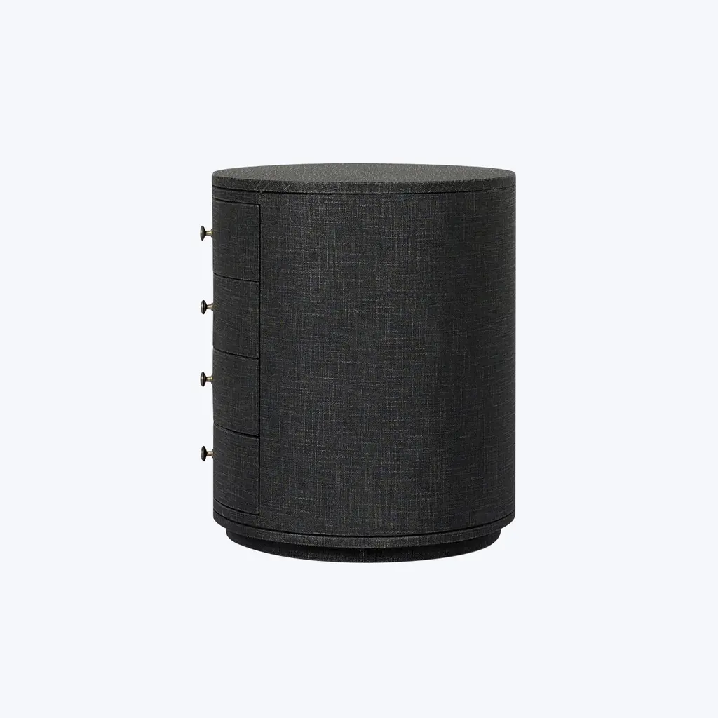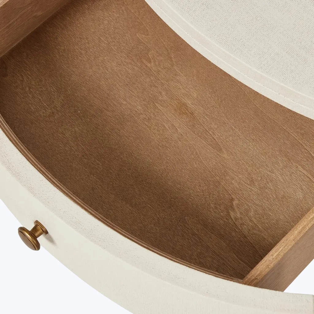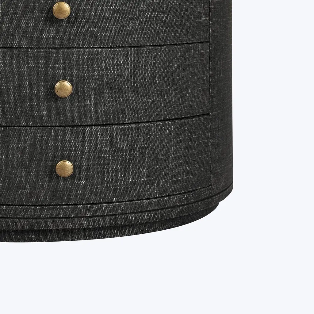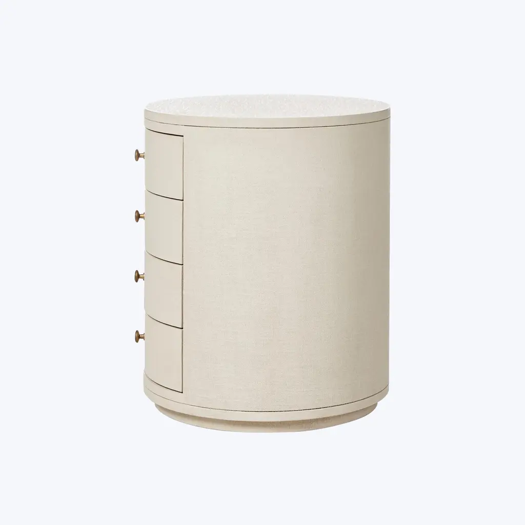 Elevate your sleep space with the elegant curves of Four Hands's Amelia Oval Nightstand. Crafted in painted linen, this refined bedside table is designed with four drawers, offering generous storage. Choose from light and dark hues.