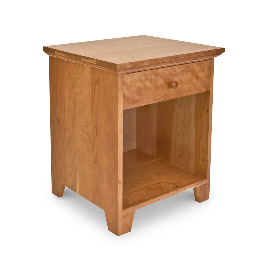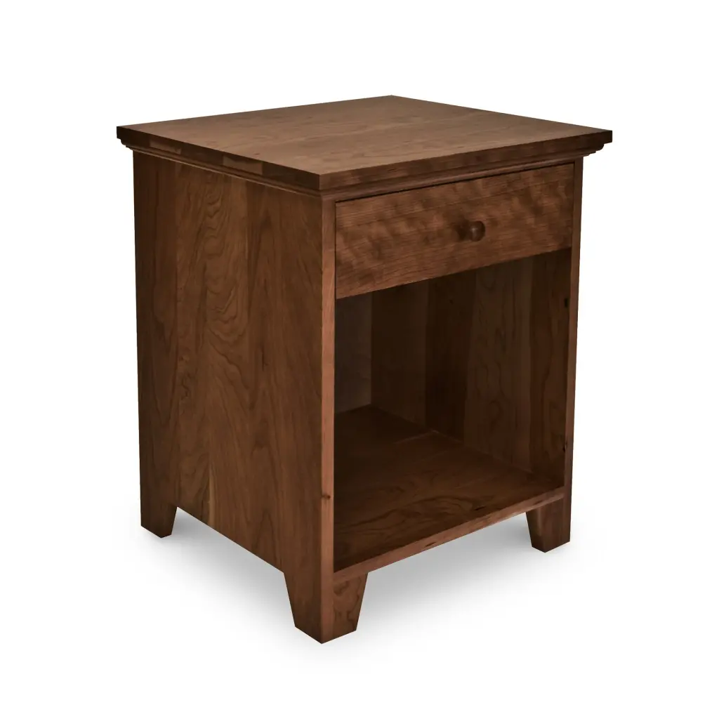 Our American Country 1-Drawer Enclosed Shelf Nightstand has simple, shaker design paired with a unique base. It will bring a piece of the American countryside into your bedroom, a perfect bedside table for any bedroom.Base price represents nightstand in natural cherryShown in natural cherryMatching furniture available in our American Country Furniture Collection