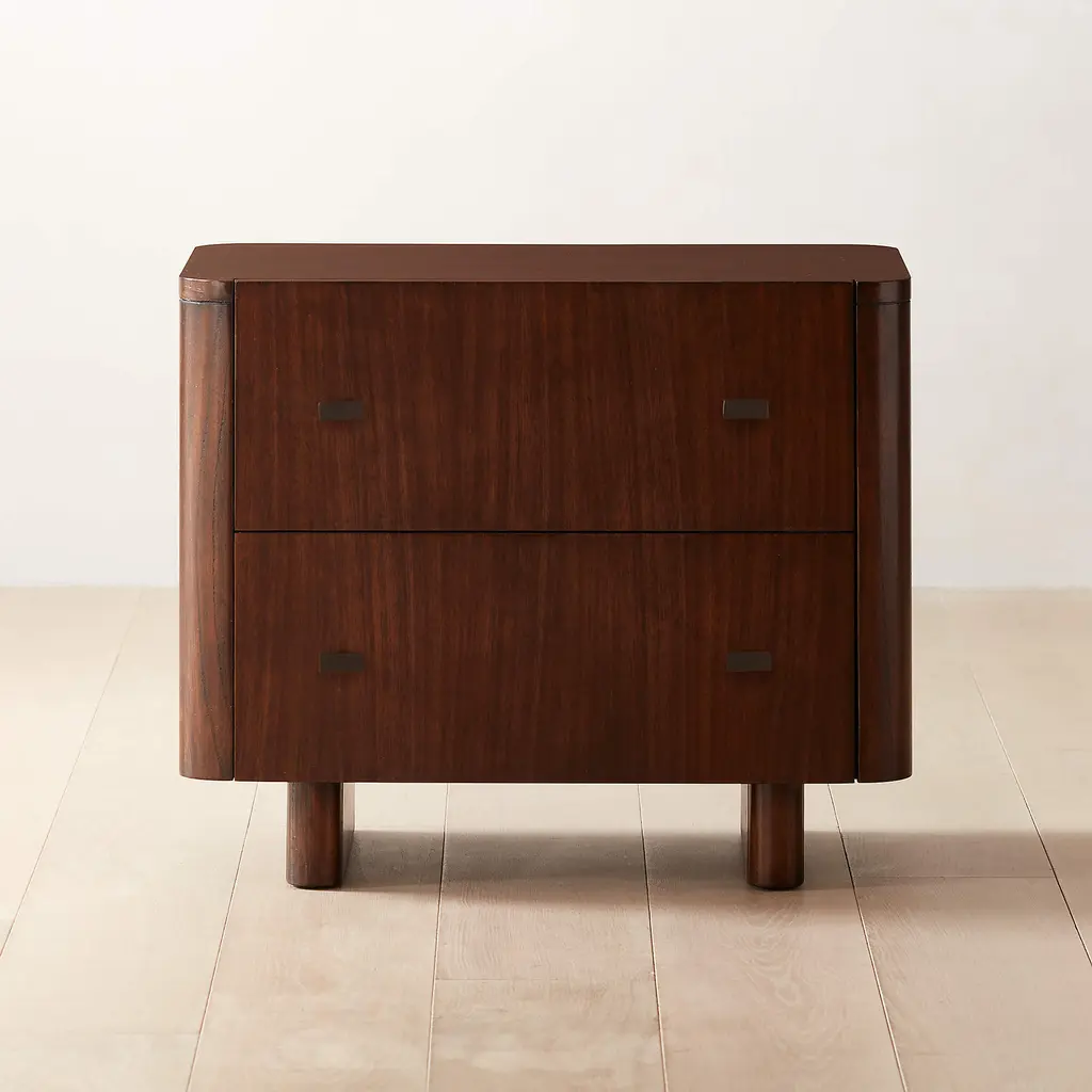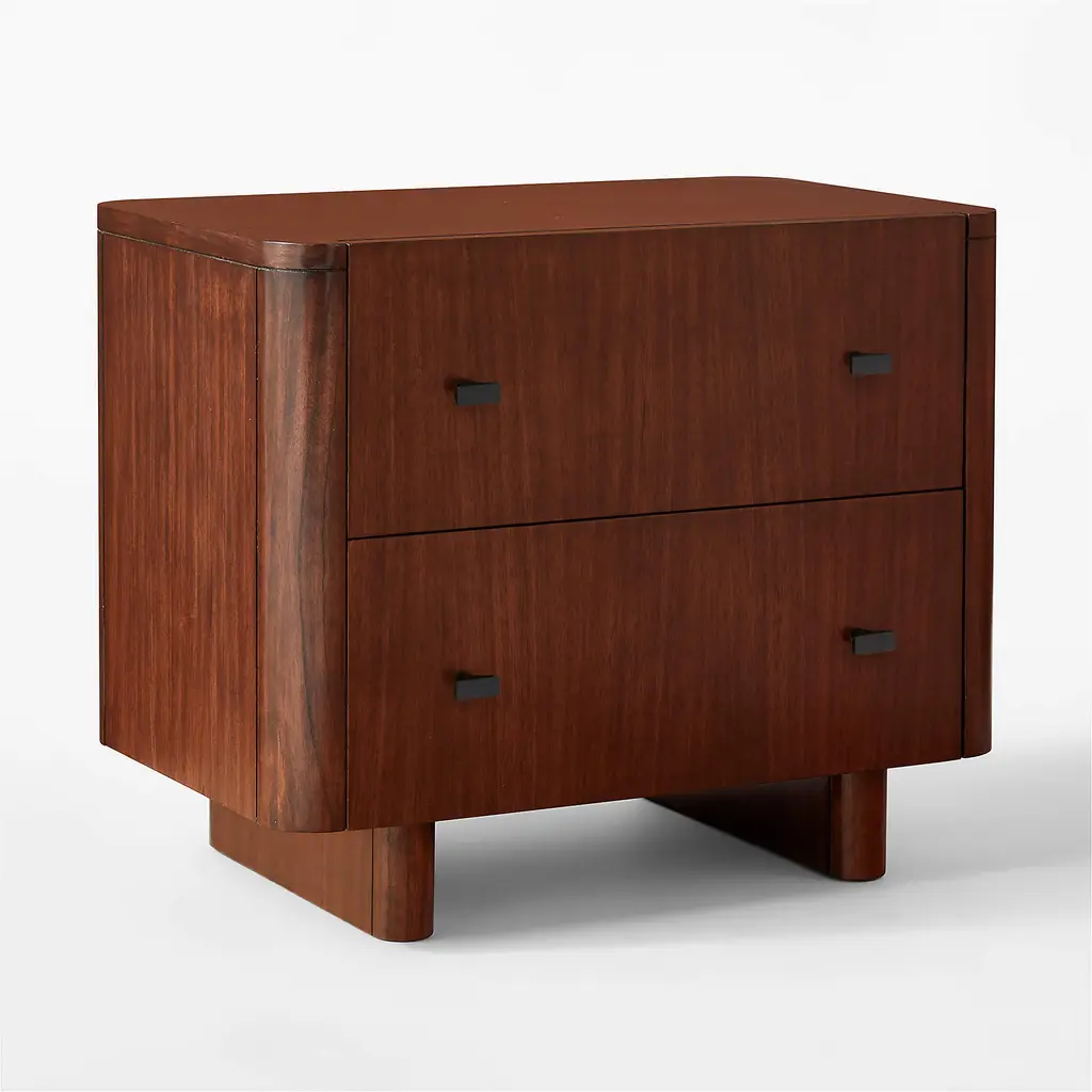 Beautiful rift-cut walnut veneer takes on rich, dark tones in this nightstand by Barcelona-based Mermelada Estudio. Shown here with Damon Black Knobs, adding sleek lines and subtle curves in an elevated matte finish. CB2 exclusive. Note: Andora Nightstand is shipped with stock hardware. Additional hardware will ship separately.