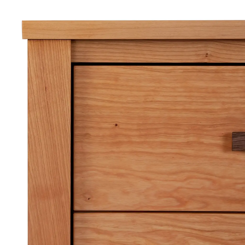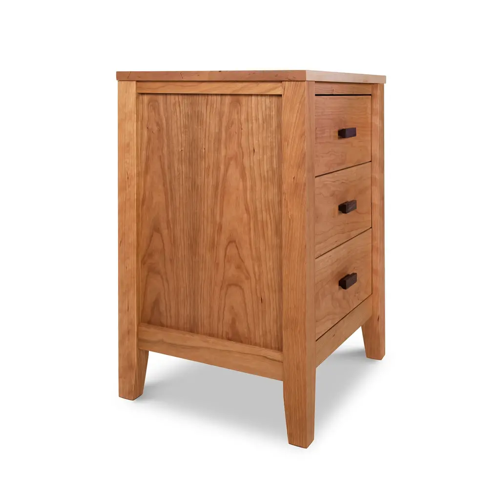 Delivery Information: This furniture piece is available for pick-up from our Southern Vermont showroom or delivery throughout New England, New Jersey, New York City and select areas of eastern New York State. Our Andover Modern 3-Drawer Night Stand illustrates how both traditional Vermont craftsmanship and modern design can come together to create a timeless piece of quality furniture. Crisp straight lines, tapered legs and walnut accents make this night stand the perfect match for our Modern Incline Bed. With its three-drawer configuration you'll have all the bedside storage you need, all in a sleek designer night stand. Construction details feature precision dovetail drawer construction with full extension metal undermount soft close slides which ensure quiet and smooth operation. Choose from natural cherry, maple and walnut hardwood. Handcrafted in Vermont using eco-friendly, sustainably harvested materials. One (1) available in natural cherry with natural walnut pulls Finish: Oil body with a polyurethane top Please note: Showroom items are subject to wear and tear and may show signs of use as a display model. Additional details, images and viewing options are available upon request.