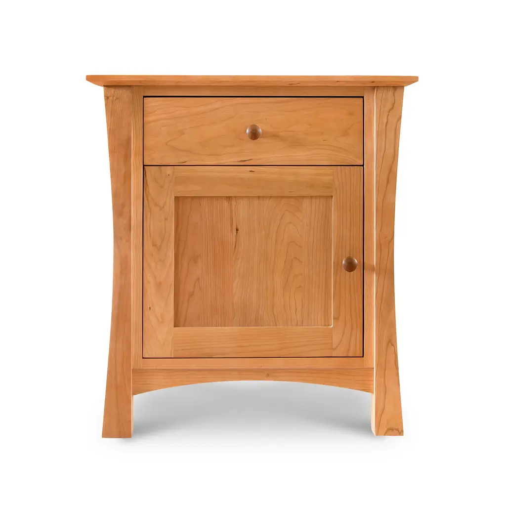 Our luxury handcrafted Andrews 1-Drawer Nightstand with Door makes for a wonderful bedside addition to your high-end bedroom collection. Featuring one drawer, this nightstand gives you plenty of storage underneath with a door for privacy.Base price represents nightstand in natural cherryShown in natural cherry with walnut knobs