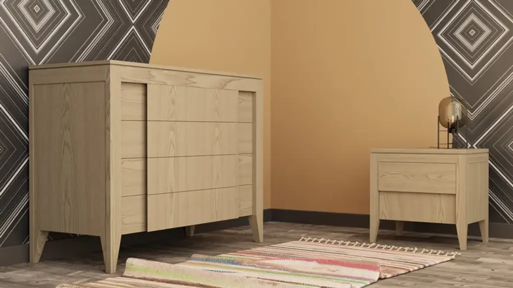 Bedside table ANERIO made of Ash walnut wood with 2 drawers. Drawer fronts with opposed grain and different reliefs.