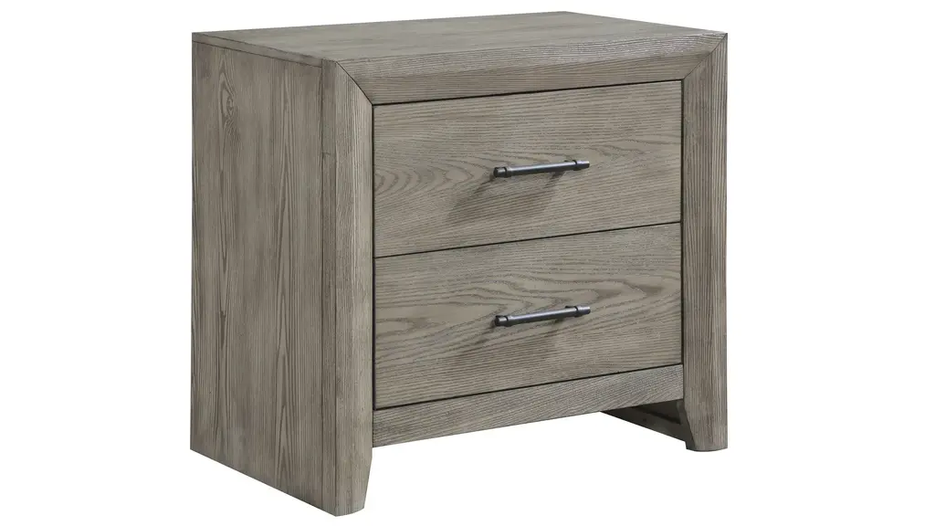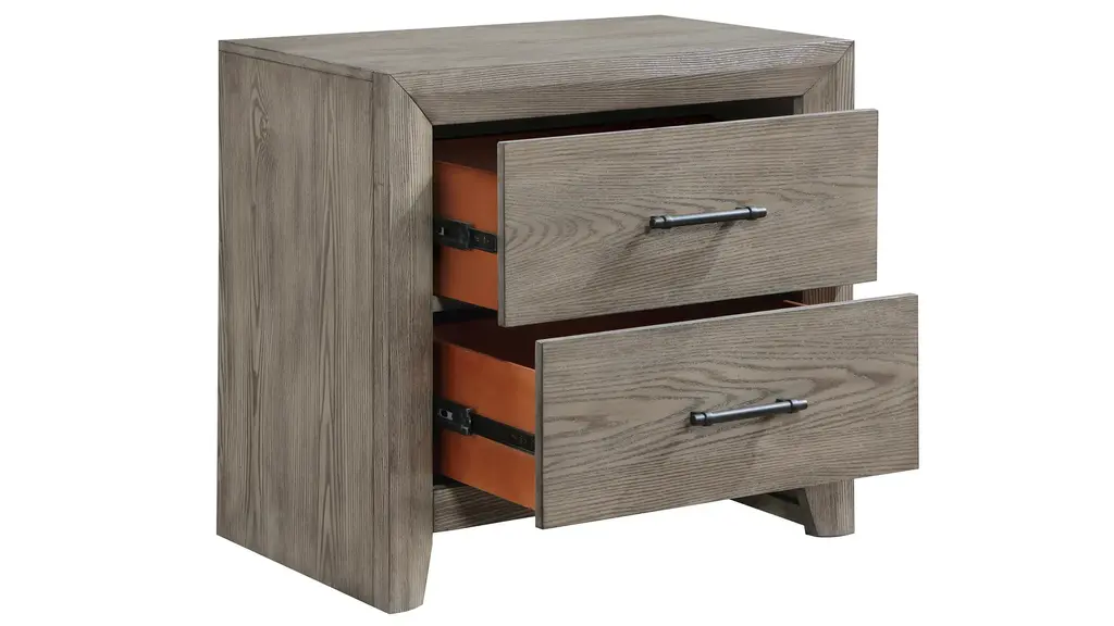 Bring a modern, rustic touch to your bedroom with this Anson Nightstand. Crafted from durable acacia wood and selected hardwoods, the nighstand features beveled edges and 2 dovetail drawers with ball bearing glides. The sleek finish enhances the natural wood grain while the matte black drawer pulls adds elegant touch, making this a versatile addition to any d_cor.
