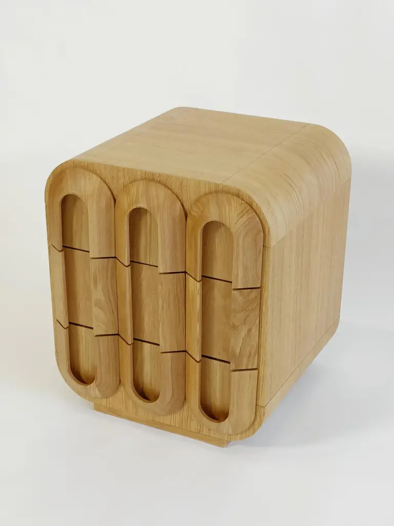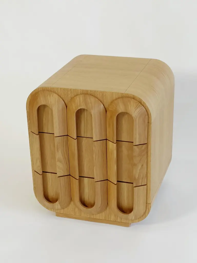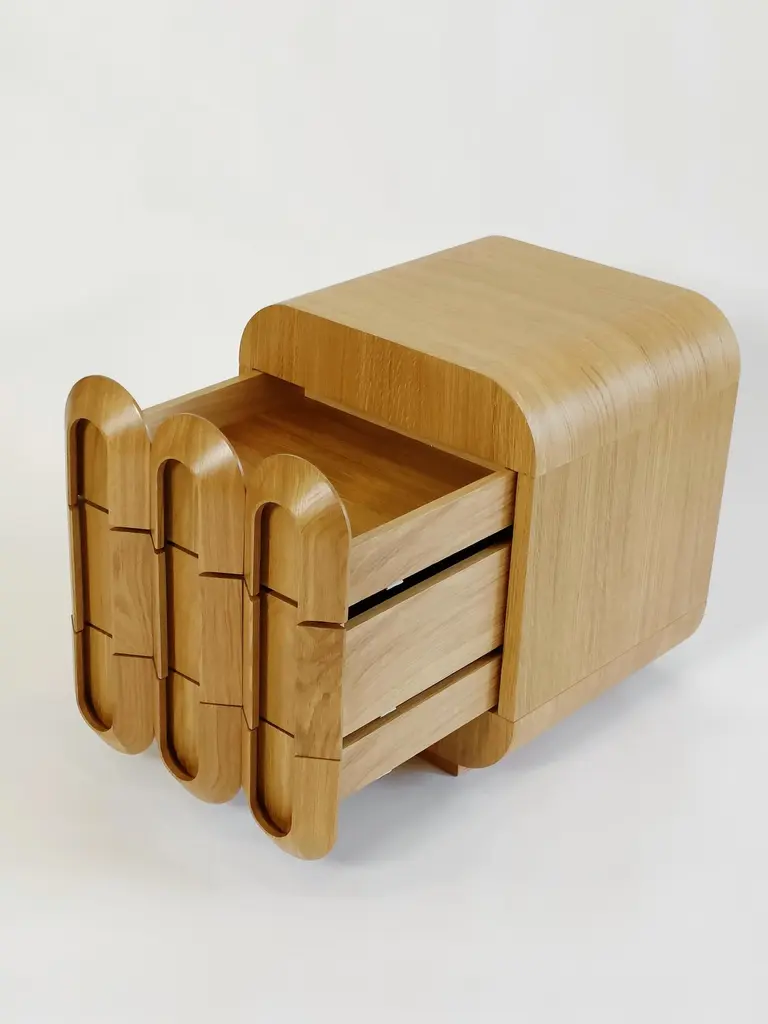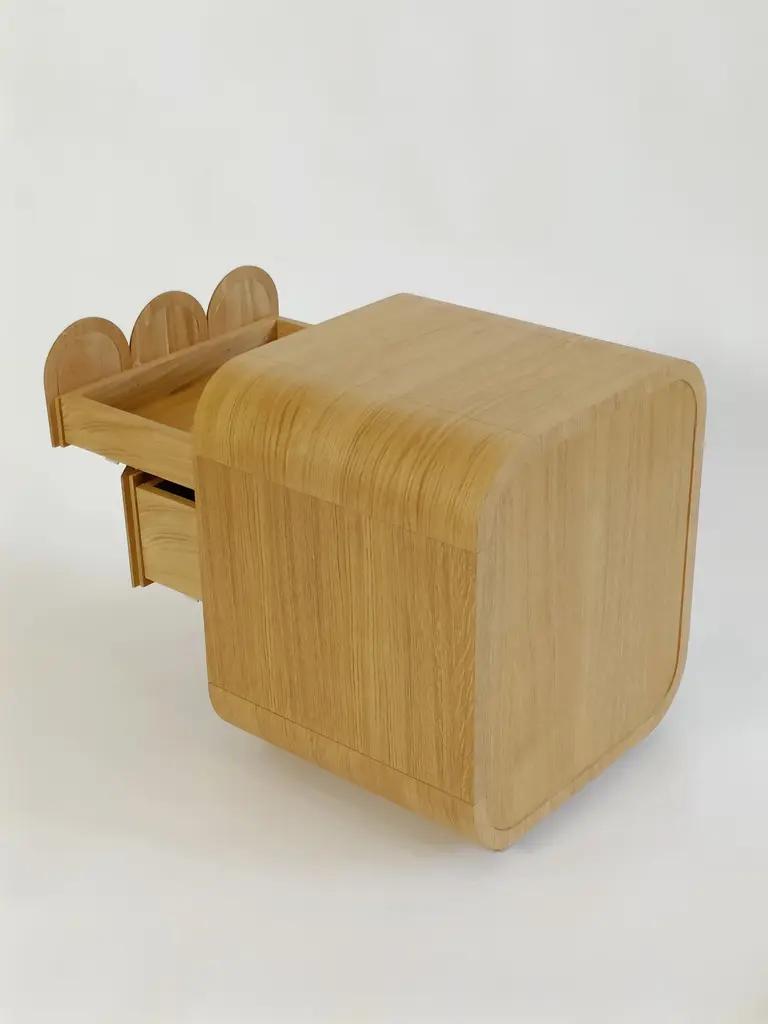 Arcate Bedside Table, In Oak Wood, By Accardi Buccheri For Medulum