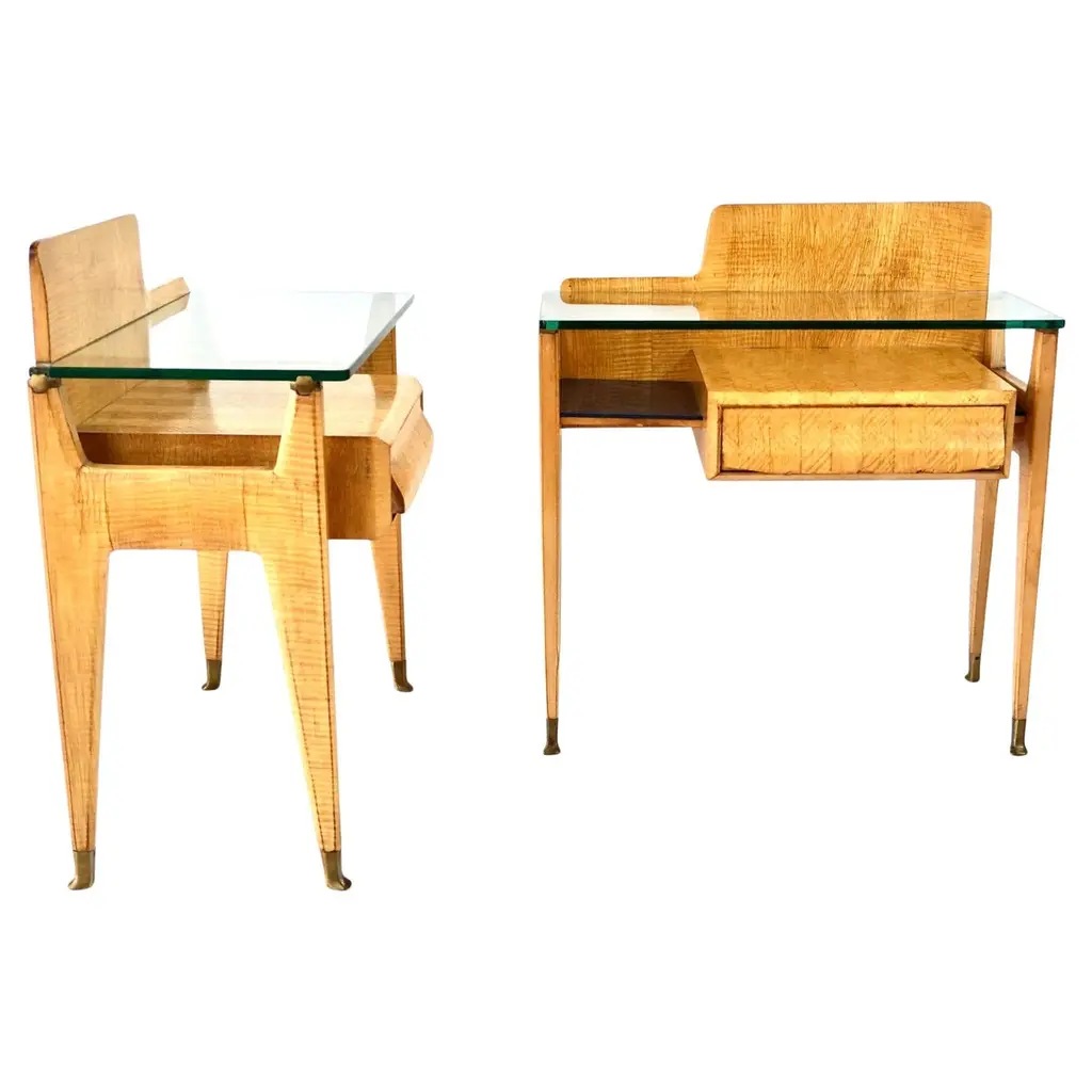 Art Deco Walnut Burl And Brass Nightstands 1 Of 2