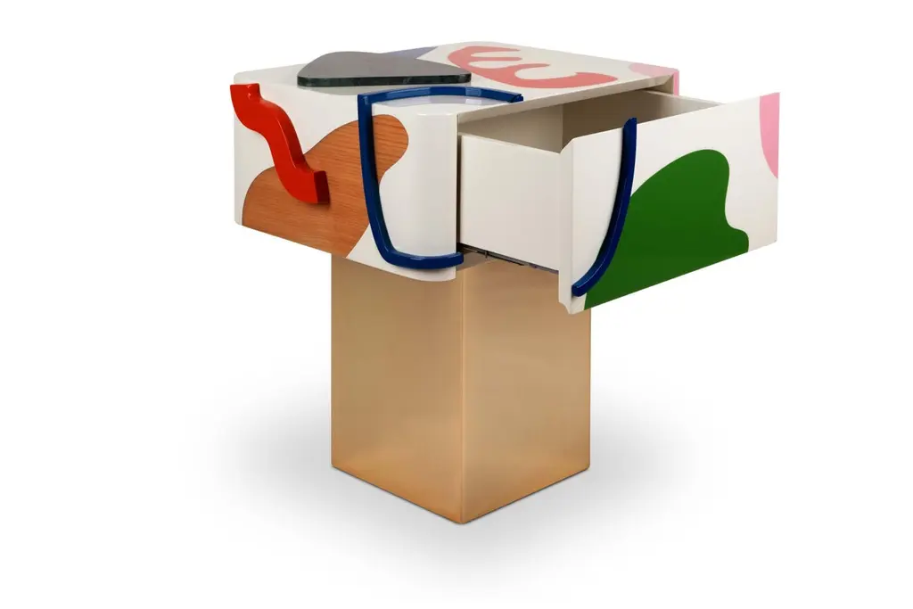 Art-Inspired Fauves Nightstand Lacquered Wood Marble Made In Portugal By Malabar