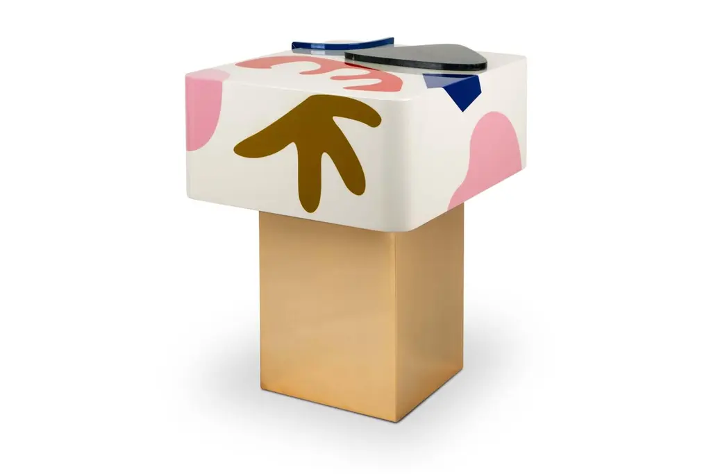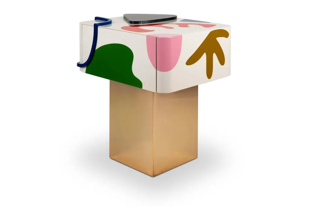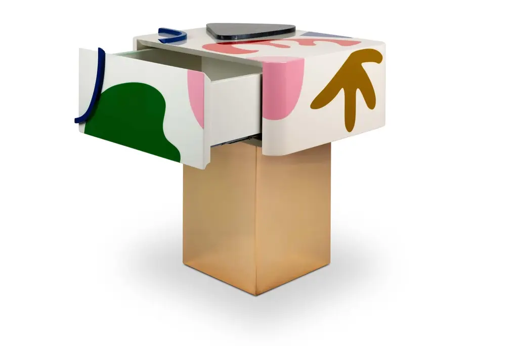 Back in the Summer of 1905, Henri Matisse and André Derain started applying aggressively straight from non-naturalistic color tubes over their paintings. And then the first avant-garde modernist movement was born, the Fauvism, Influenced by the Post-impressionism of Van Gogh and the Neo-Impressionism of Sairat. In contrast to the dark, these like-minded artists disturbing nature, using shapes quite abstract, fierce brushwork, and bright emotive colors. Inspired by the leaders of the movement's masterpieces, Malabar designers conceived the Fauves nightstand. Artistic-inspired, this bedside features a wooden structure hand-painted with simple abstract forms but bold colors, adorned with Verde Guatemala marble, supported by a polished brass base. This fauvism-inspired nightstand was designed to boost any art-filled bedroom.