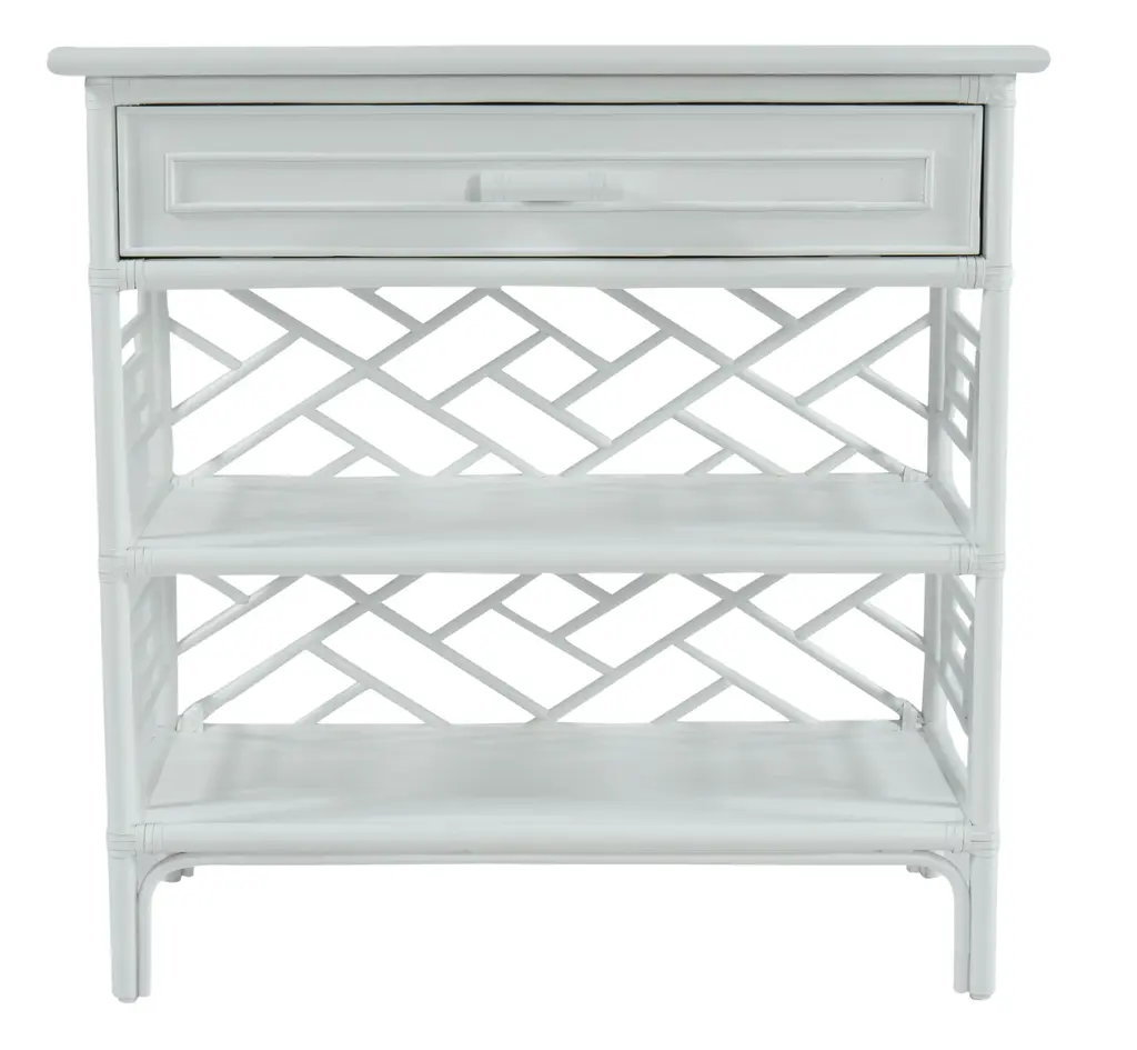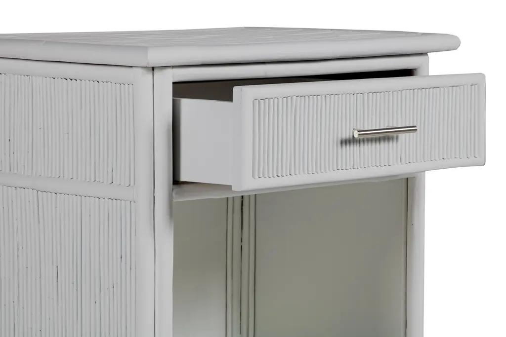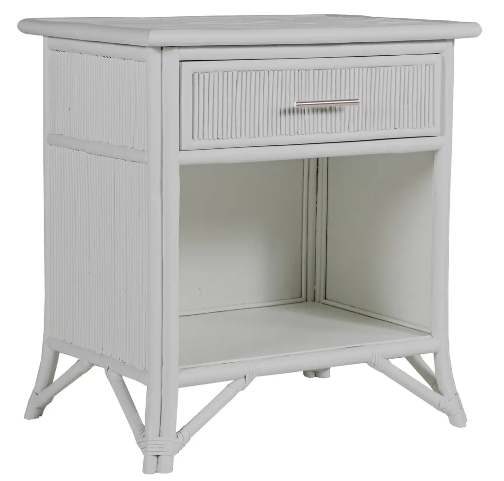 Versatile and highly functional, the Aruba Nightstand captures the carefree elegance of the coast. Featuring a Pencil Rattan top, sides and drawer facings the Aruba Nightstand promises to compliment any space. The one-drawer nightstand feature wooden drawer glides and a metal drawer pull. The one-drawer nightstand offer plenty of storage with the addition of the open shelf. The spacious top provides a space for decorative accessories or framed photos. Each David Francis nightstand is hand-finished and made to order, please allow time for delivery.