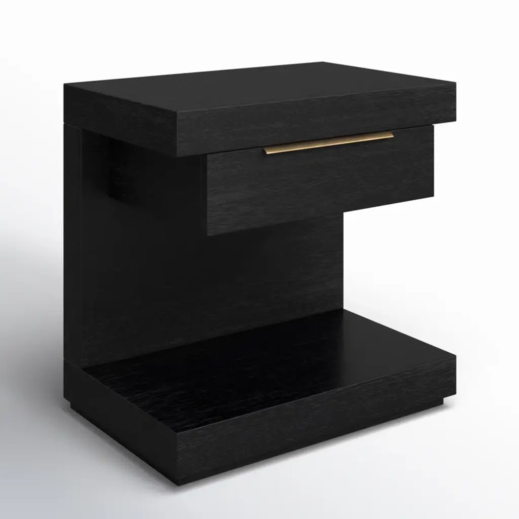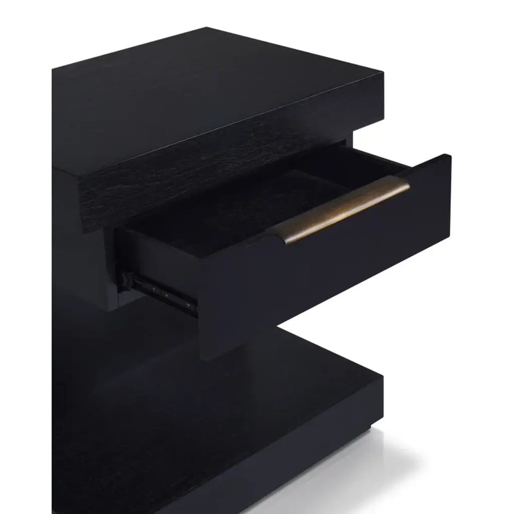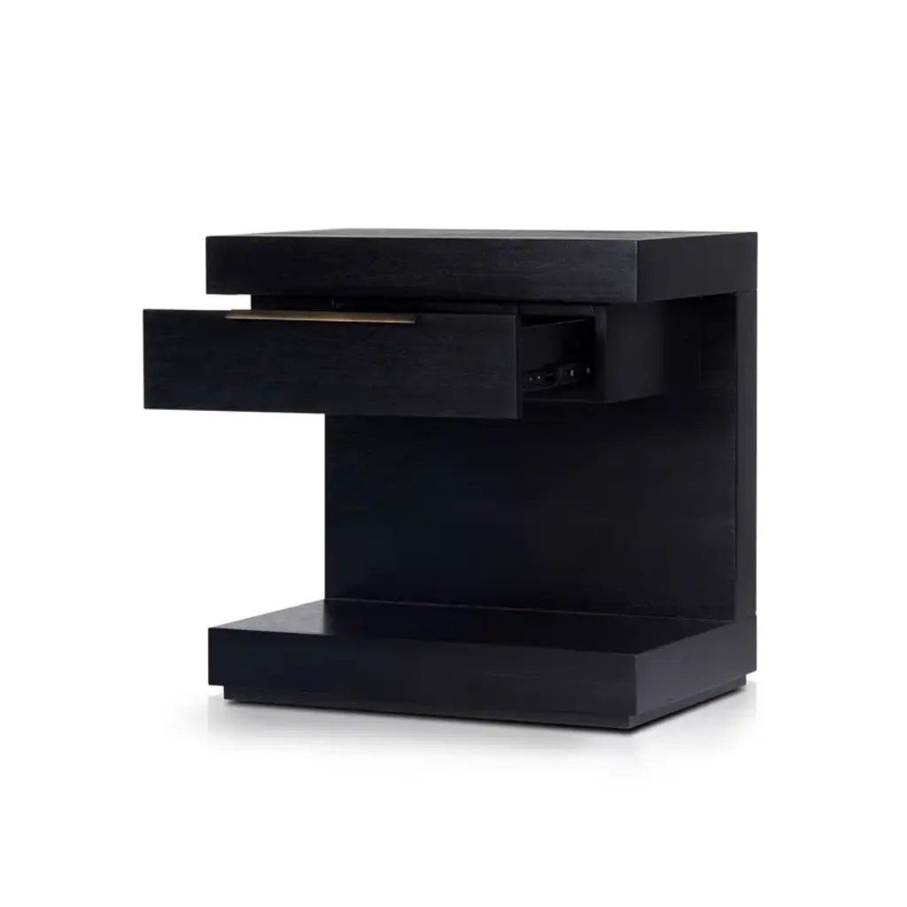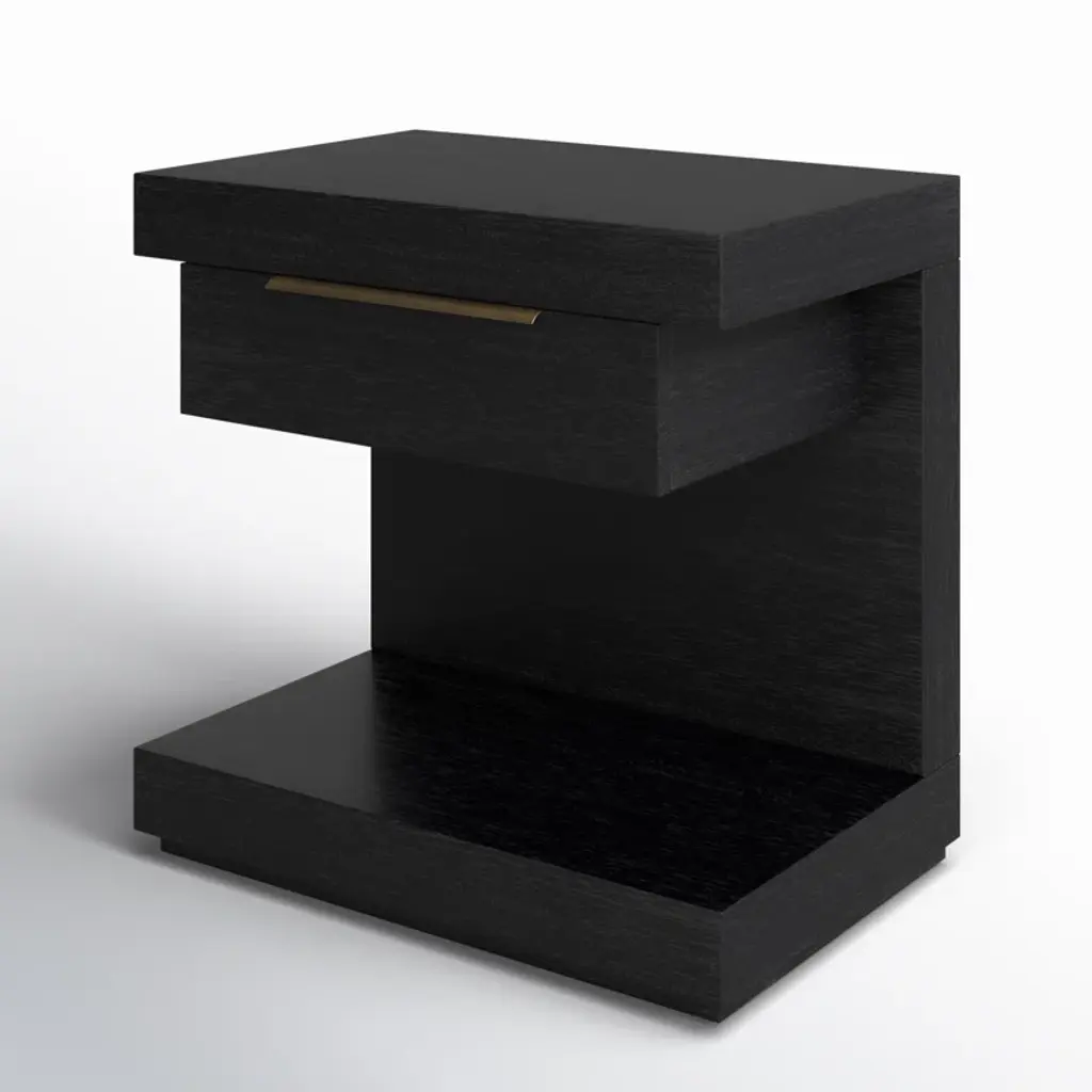 The Xavier Nightstand in Black exudes modern sophistication with its sleek lines and functional design. Equipped with soft-close ball bearing glides, a fixed shelf, and a single drawer, this fully assembled nightstand offers ample storage while maintaining a minimalist aesthetic. The English dovetail construction ensures long-lasting durability.