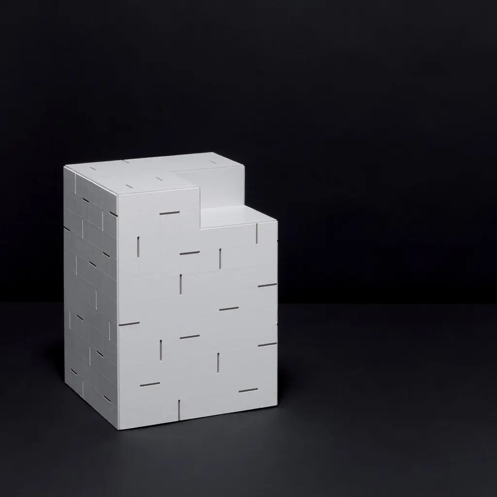 The minimal modern frame of this unique and luxurious nightstand designed by Stéphane Parmentier is entirely made of the finest saddle leather in arctic white with tonal stitching and interspersed black grooves. The elegant cubic silhouette has a small square carved section on top that, together with the tiled details, enhance its modern shape and the soft consistency of the leather. This stunning piece of functional decor is accessorized with hidden casters and will mix effortlessly with any bedroom style.