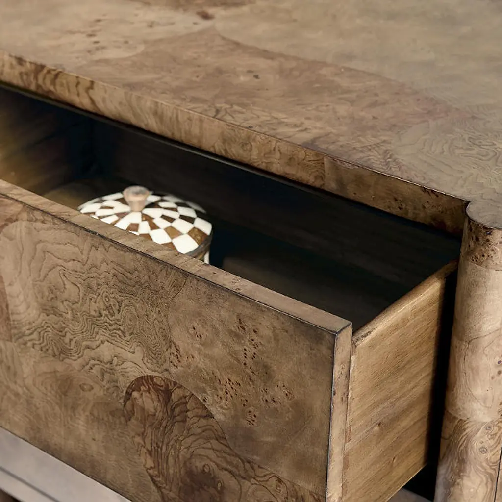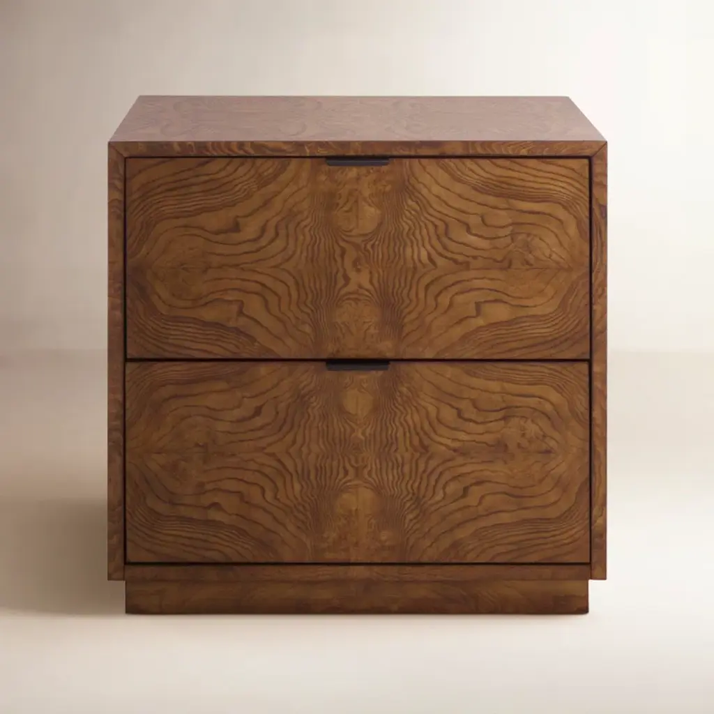 Handcut sections of Mappa burl, olive ash, ash burl and chestnut burl veneers are laid in an organic pattern to create a functional statement piece. With soft-close drawers, an integrated power strip and type A and type C USB ports, our Atwell Nightstand is an elegant place to stow your bedside essentials. Crafted of solid and engineered wood Handcut sections of Mappa burl, olive ash, ash burl and chestnut burl veneers are laid in an organic pattern Clove finish Because of the handmade nature of the veneer pattern, no two will be exactly alike Three Two drawers with a push-latch mechanism Integrated power strip with type A and type C USB ports 6-1/2' cord Adjustable levelers Included anti-tip kit is required for installation; kit consists of safety-tested mounting hardware, a nylon strap and instructions To prevent injuries from furniture tipping over, this item must be permanently affixed to the wall; professional installation is recommended To prevent injuries or damage to item, recommended team lift (two or more people) for furniture placement Coordinates with the Atwell Chest Arrives assembled A Frontgate exclusive. At Frontgate, our primary focus is quality. We guarantee that every product we sell will stand up to the supreme test – our customers' satisfaction. To learn more about our policies, visit our Shipping & Processing, Returns & Exchanges and Warranty & Price Guarantee pages. Handcut sections of Mappa burl, olive ash, ash burl and chestnut burl veneers are laid in an organic pattern to create a functional statement piece. With soft-close drawers, an integrated power strip and type A and type C USB ports, our Atwell Nightstand is an elegant place to stow your bedside essentials. Crafted of solid and engineered wood Handcut sections of Mappa burl, olive ash, ash burl and chestnut burl veneers are laid in an organic pattern Clove finish Because of the handmade nature of the veneer pattern, no two will be exactly alike Three Two drawers with a push-latch mechanism Integrated power strip with type A and type C USB ports 6-1/2' cord Adjustable levelers Included anti-tip kit is required for installation; kit consists of safety-tested mounting hardware, a nylon strap and instructions To prevent injuries from furniture tipping over, this item must be permanently affixed to the wall; professional installation is recommended To prevent injuries or damage to item, recommended team lift (two or more people) for furniture placement Coordinates with the Atwell Chest Arrives assembled A Frontgate exclusive. At Frontgate, our primary focus is quality. We guarantee that every product we sell will stand up to the supreme test – our customers' satisfaction. To learn more about our policies, visit our Shipping & Processing, Returns & Exchanges and Warranty & Price Guarantee pages.