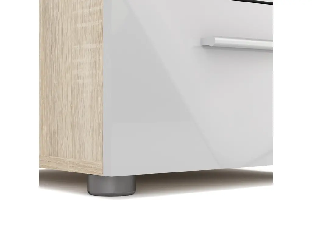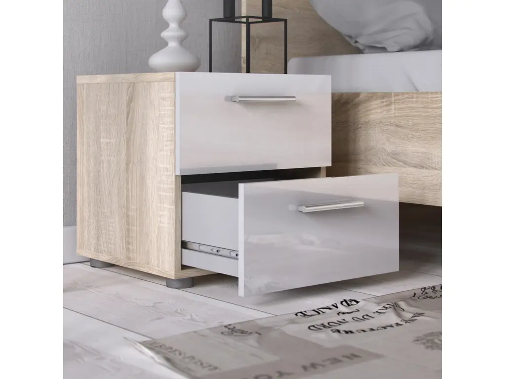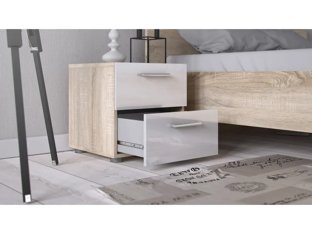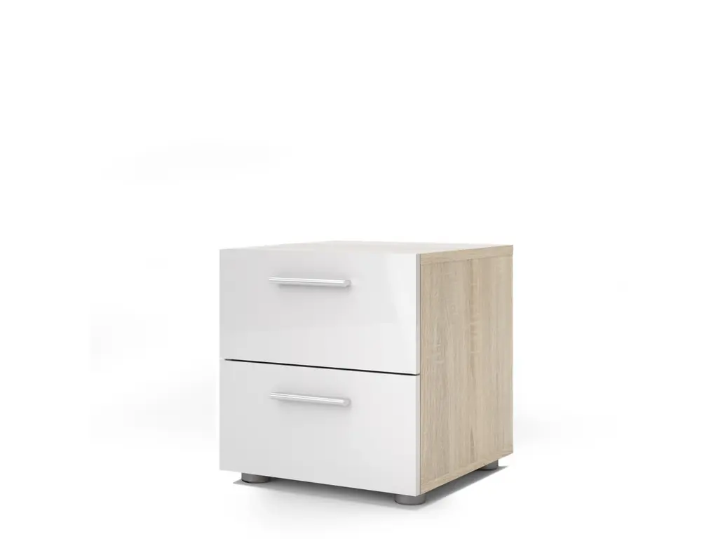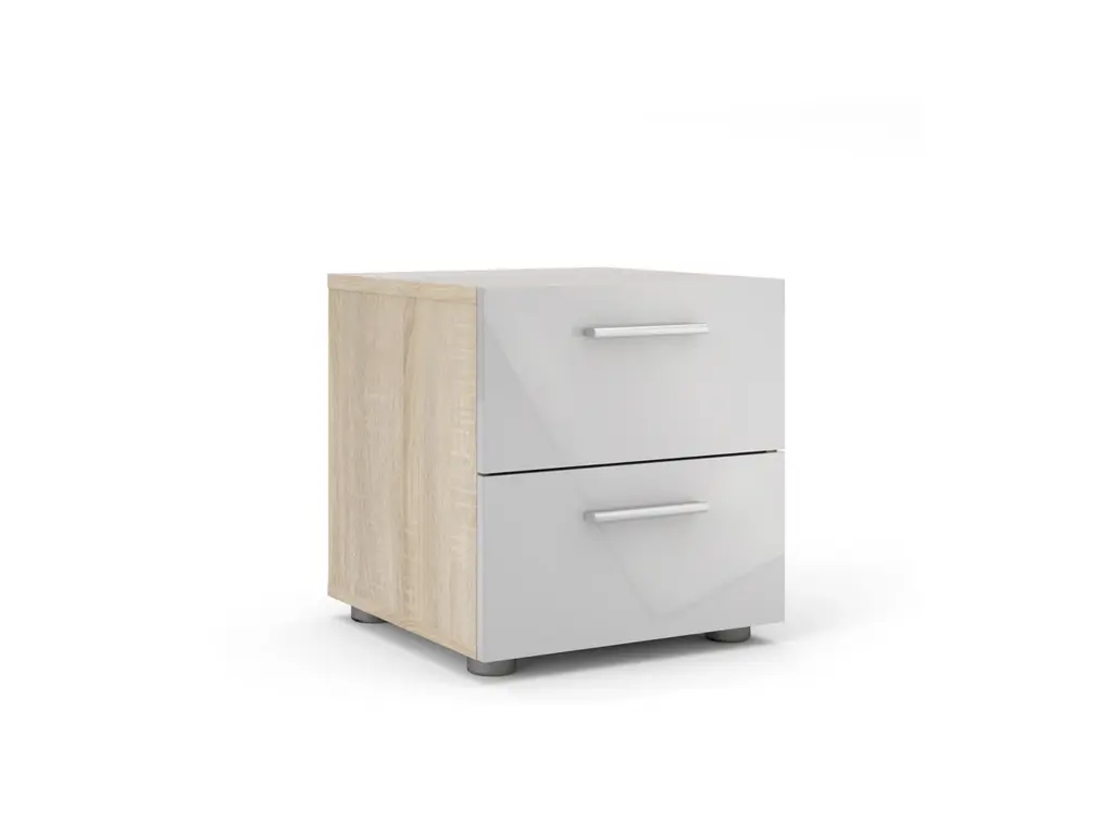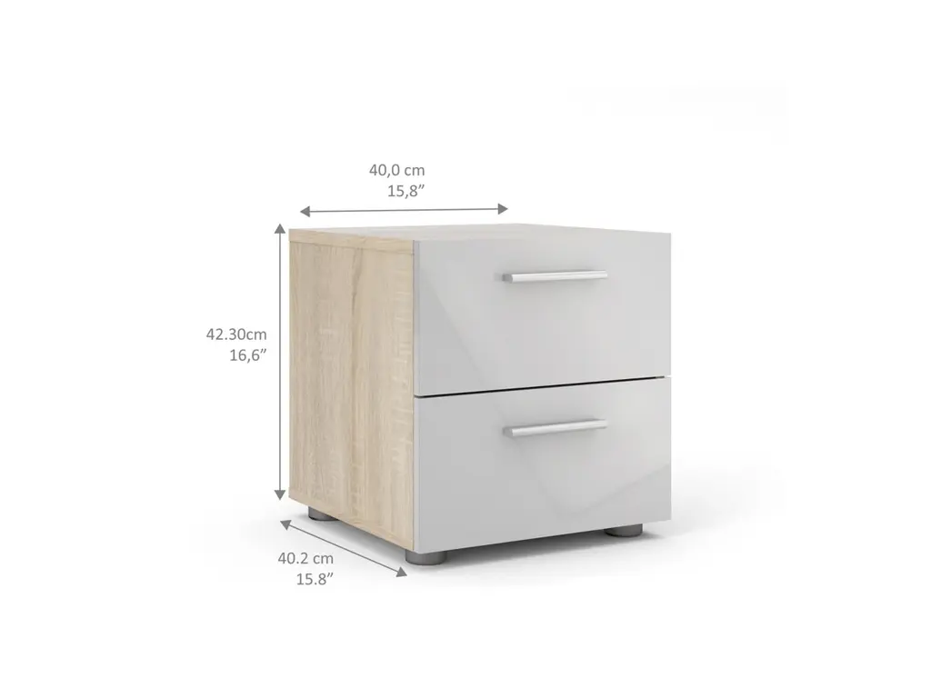 Sleek and slender bedside storage. Austin 2 Drawer Nightstand keeps bedside necessities within reach. Helping to orchestrate a clutter free room, this nightstand takes up minimal space and meshes with a variety of decor styles. Streamlined hardware and round feet give the Austin line its simple chic feel. Standing strong with metal drawer liners and an easy to clean foil surface the Austin nightstand will be a productive and durable piece in your collection. Pair this Austin 2 Drawer Nightstand with other items from the Austin collection to complete the look.