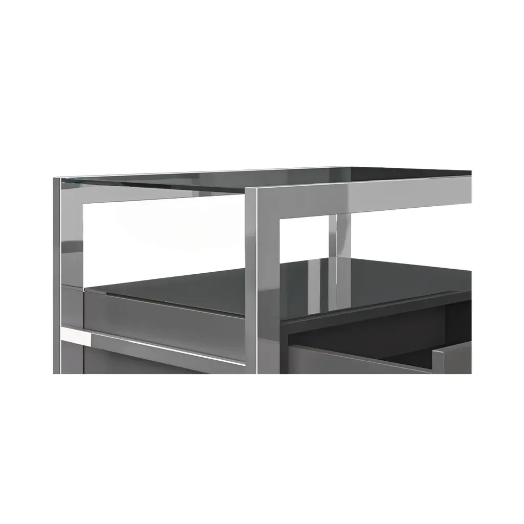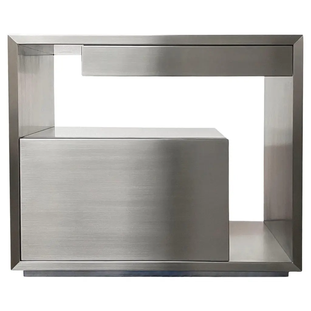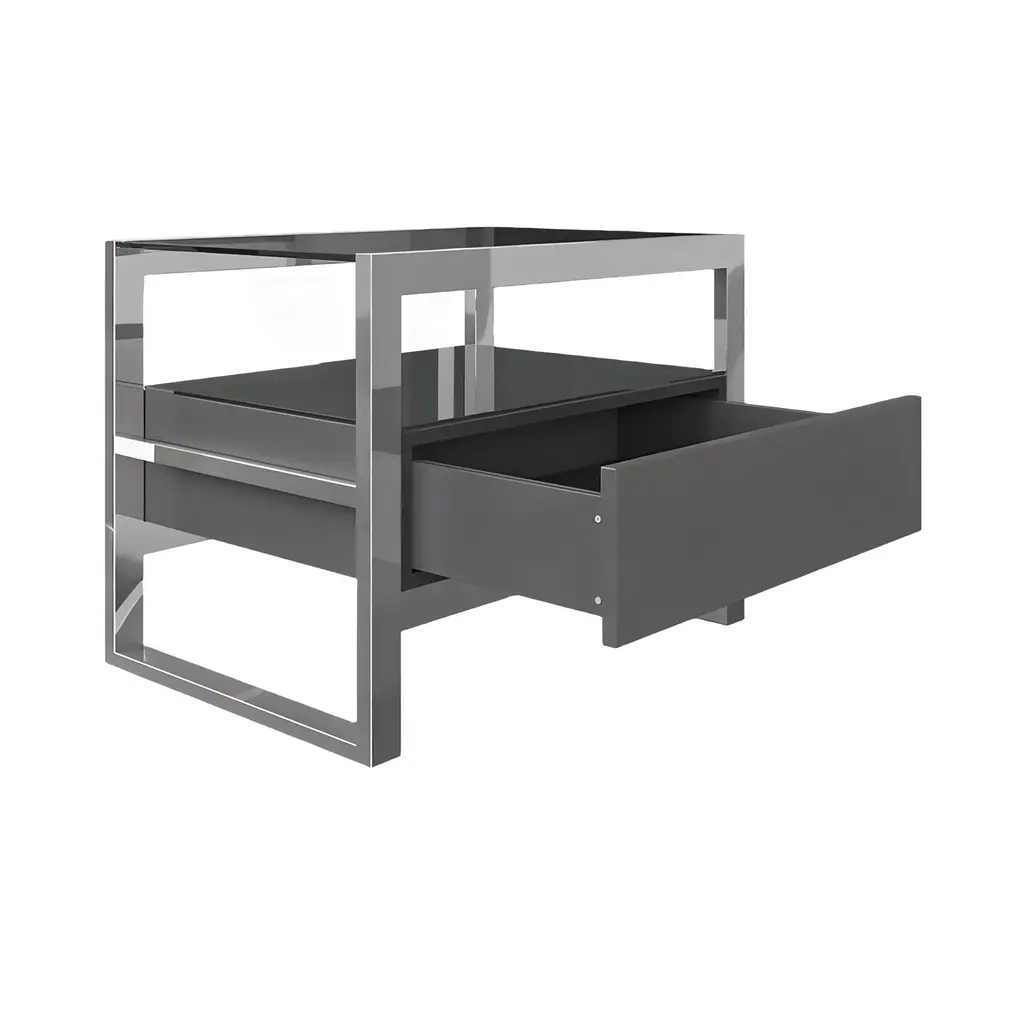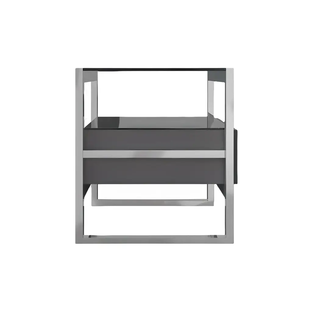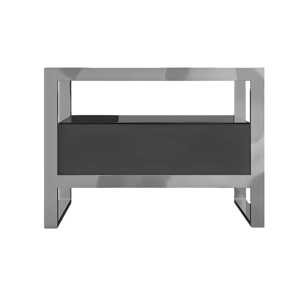The Bari Nightstand Gray is ideal to be used alongside platform beds because is designed to rest very close to the floor. Since every bedroom needs at least one side table, the petite beautifully crafted stainless steel item is adorned with tempered glass and sleek style. A pure gray finish adds a cosmopolitan and vibrant look. Purchase one or a set and pair it with the Bari Dresser. Local Delivery Only