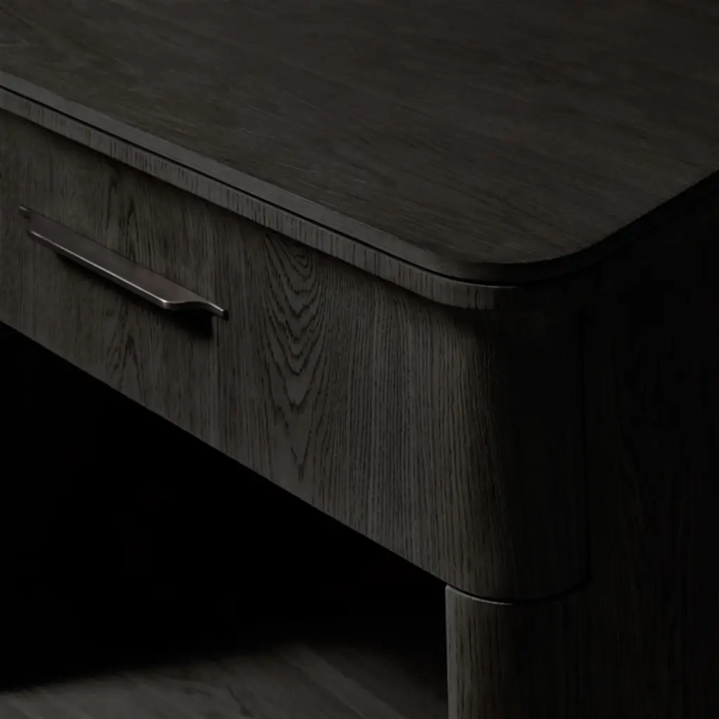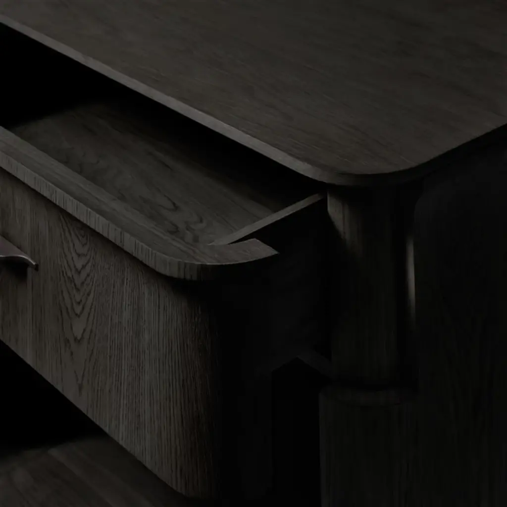 A modern take on classical architecture, Baron, by Milan-based designer Arthur Gentil, is defined by flared contours that recall the columns of ancient Rome and Greece. Handcrafted of beautifully grained European white oak, its surfaces are wire brushed by artisans to enhance the wood's natural texture. Sleek hardware continues the drawer's clean lines and adds a subtle shine. SHOP THE ENTIRE COLLECTION