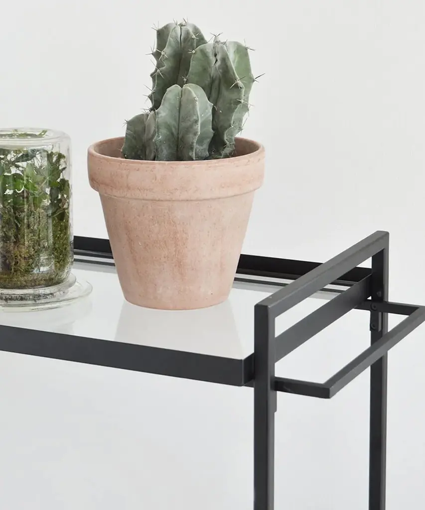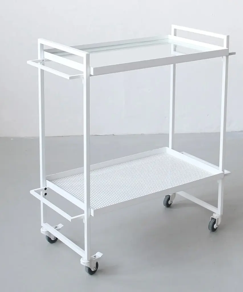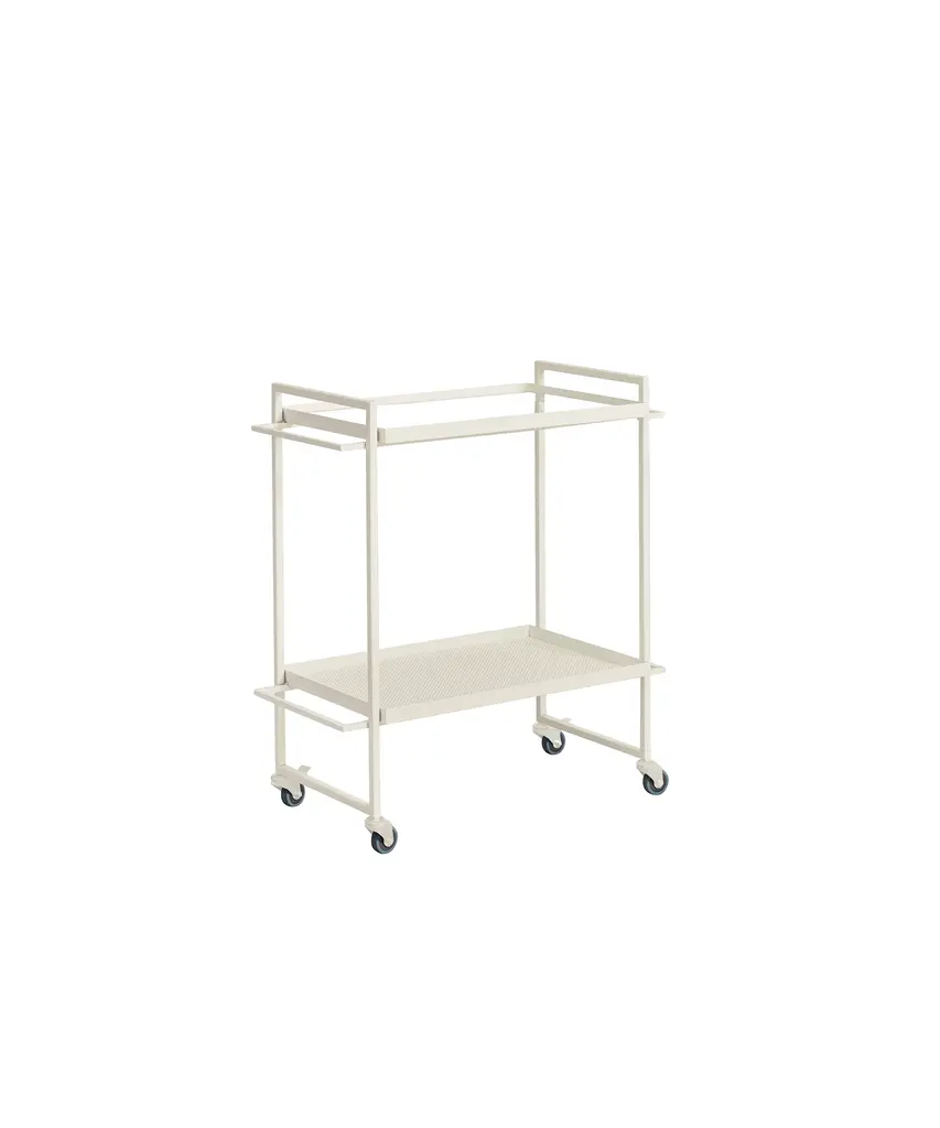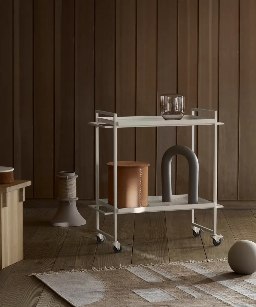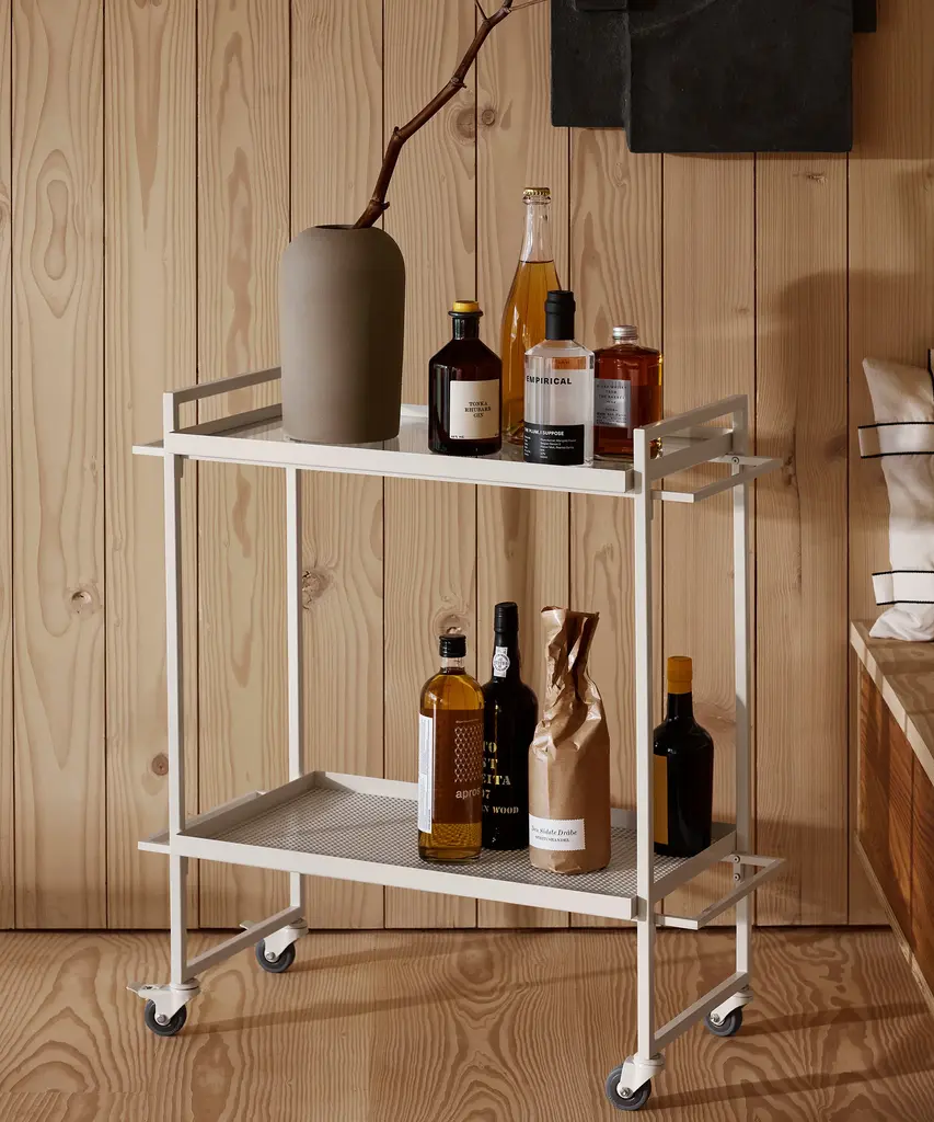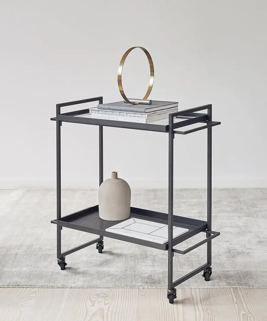 Bauhaus Trolley is inspired by the influential German Bauhaus art school. The design of the serving trolley is light and graphical. Use it as a serving trolley, as a movable serving table or to exhibit your indoor herb garden or plants. The Danish Designed Trolley emphasizes that simple design is beautiful. A functional and extremely versatile trolley perfect when used as a movable serving trolley or bar cart. In fact, you can easily use it for anything from a bedside table to a coffee table. The Bauhaus Trolley is already an all-time best seller in the collection and a unique two-storage table and a mobile piece of furniture on wheels. Useful in virtually any room of your house and will fit in any home interior. The Bauhaus Trolley is available in black and white powder-coated steel and includes two trays - one in hardened glass and one made of perforated steel. The Bauhaus Trolley series is a modern and minimalistic trolley in Scandinavian / Danish design. The wheels of the trolley can be fastened thus making it a stationary small table. This elegant piece of furniture is designed by architect Kristina Dam, it is shipped flat-packed and is assembled with screws. Kristina Dam Studios' design ethos and philosophy could be described as Nordic Minimalism, with a focus on simple graphic lines, attention to detail, and carefully selected materials. The entire range of designs is produced within the EU and shipped worldwide. Designed by Kristina Dam Studio in Copenhagen, Denmark.