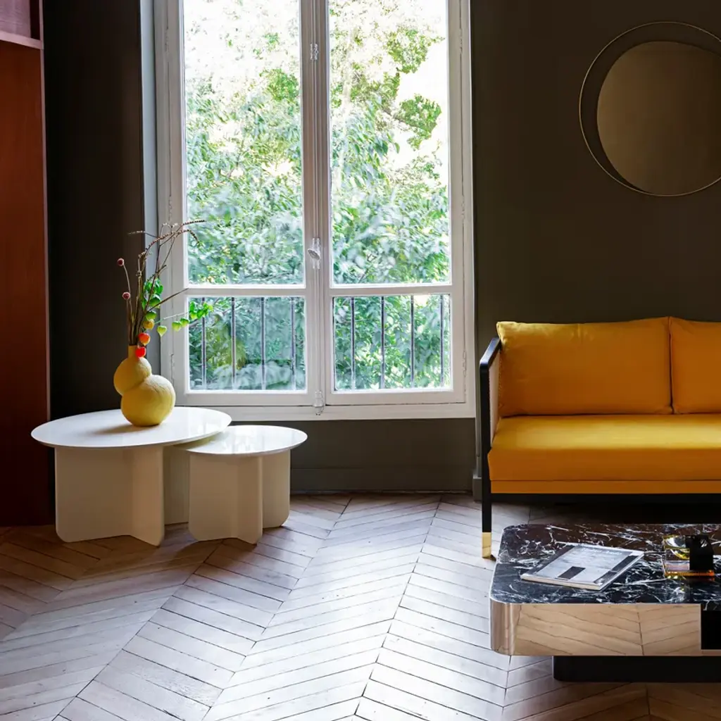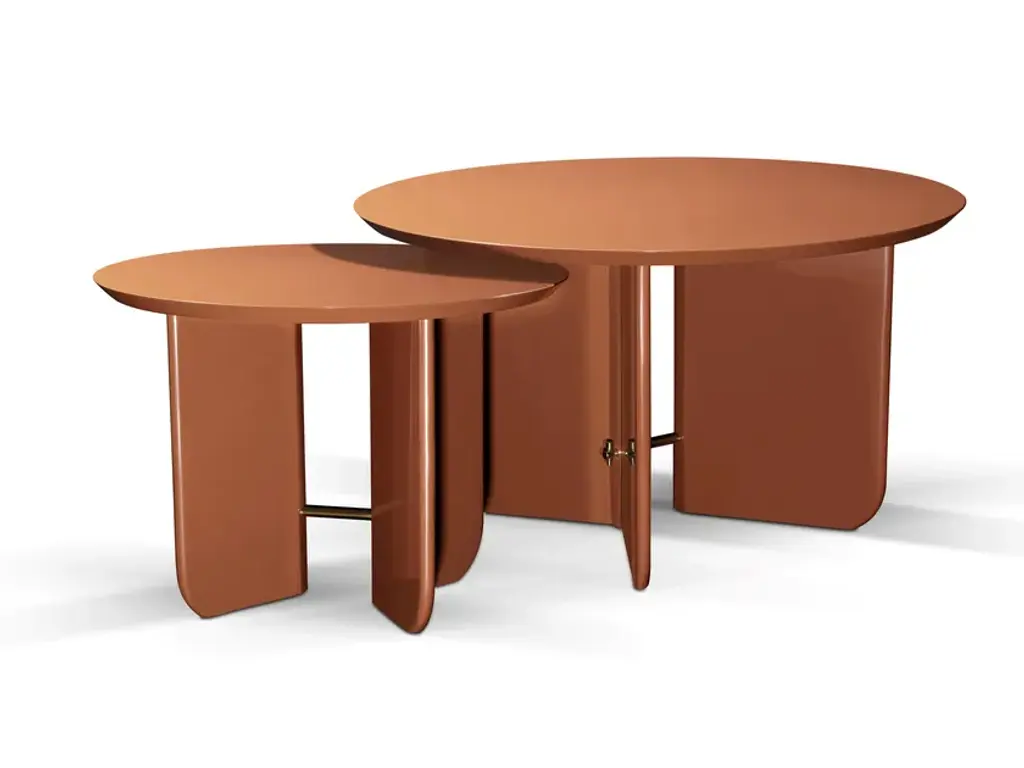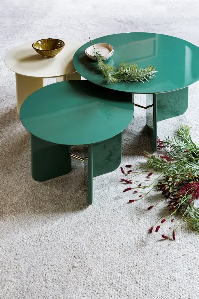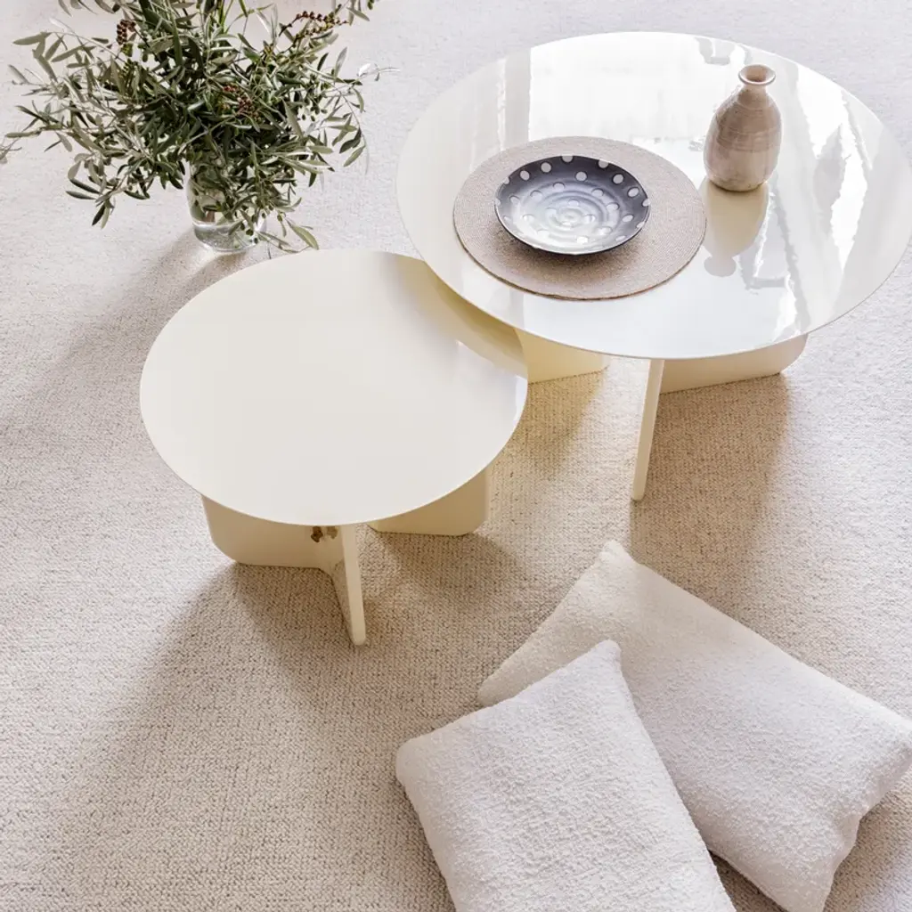 Be Good coffee tables are small side tables elegantly supported by 3 panels, and available in two sizes that can be nested together. They fit easily at the end of a sofa, hold centre-stage in the living room as a duo, or can even be repurposed as nightstands. Their lacquered wood in either ivory or red gives them a chic, low-profile Japanese touch.