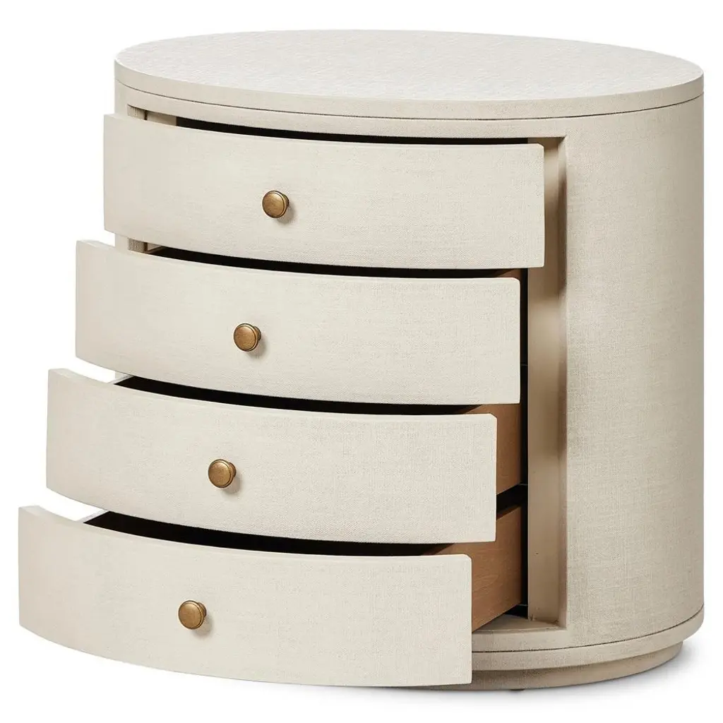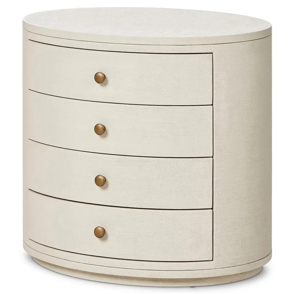 Beatrice Modern Classic Cream Painted Linen Oval Nightstand