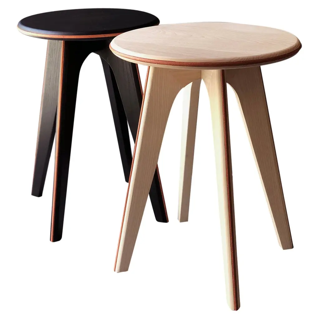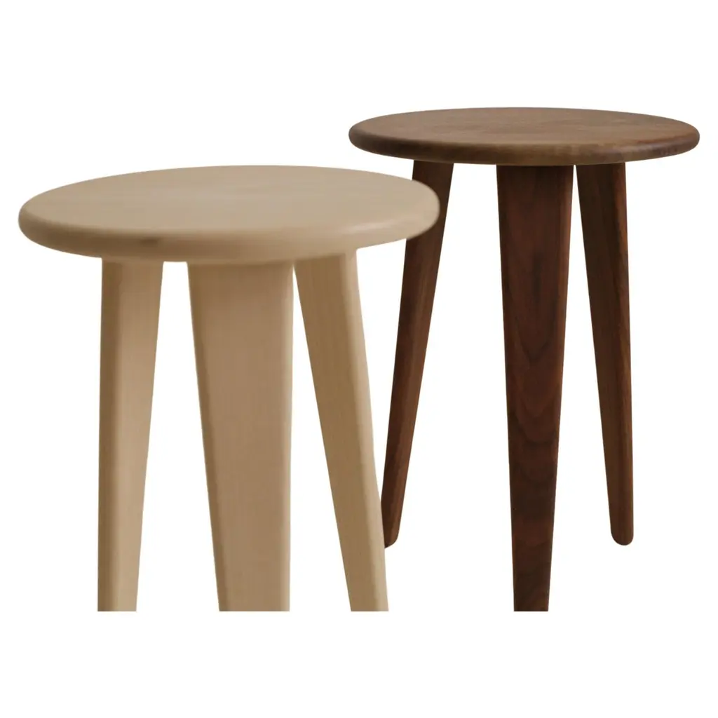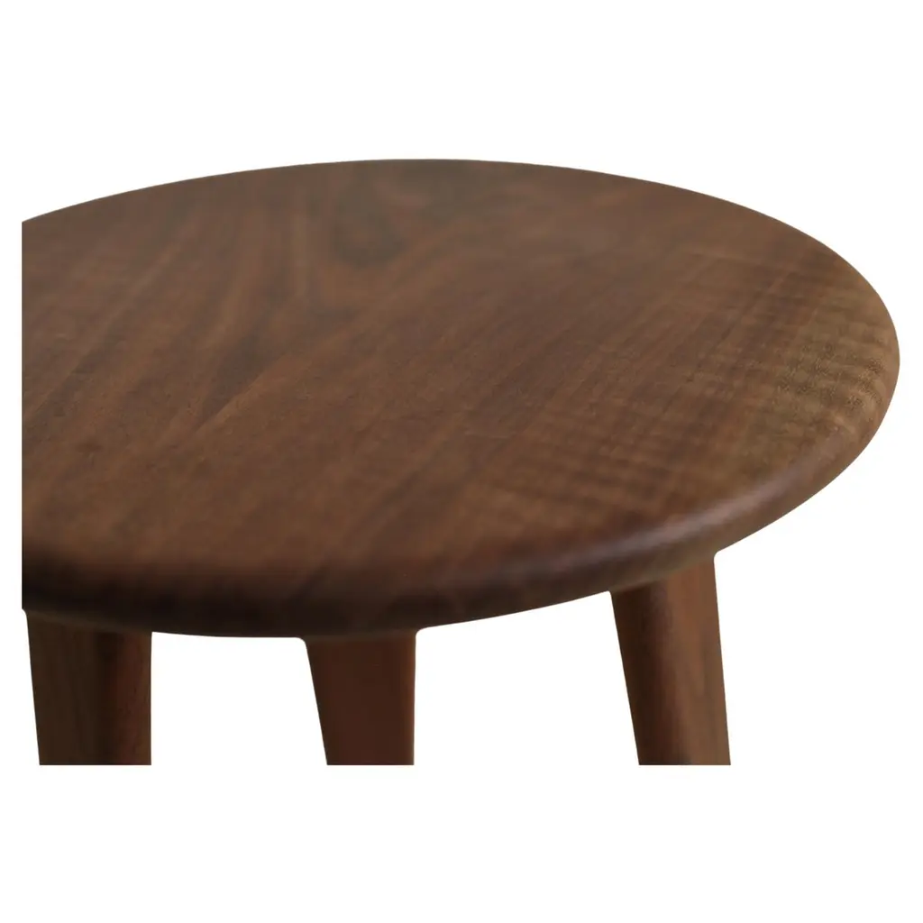These bedside tables in walnut and ash were first designed for a client who wanted nothing more than a book and a lamp by their bed. We begin by choosing a beautiful piece of wood for the top and let the character of the wood be the voice of the piece. For walnut we use a figured or claro walnut top and for ash, oak or cherry we look for exceptionally clean grain or figure for the top. We use a gentle rounded profile on the top and the legs for a soft feel and look. The legs are tapered and angled and joined with a floating tenon to the top. Our standard finish for bedside tables is a low sheen durable clear spray finish so that rings from mugs are not an issue but if an oil and wax is preferred please let us know.