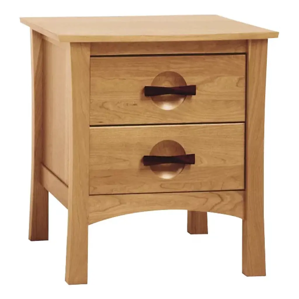 Compact bedside storage with big modern style. The Copeland Furniture Berkeley 2 Drawer Nightstand shows off a seamless, sophisticated synthesis of Arts & Crafts and Asian design. Otherwise made entirely out of solid cherry hardwood and cherry veneer, the nightstand has dark American black walnut drawer pulls for visual contrast.