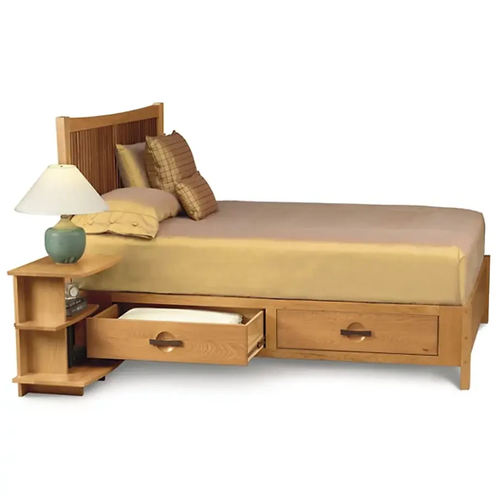 Style on standby. The Copeland Furniture Berkeley Nightstand delivers useful space with immediate access, letting you store your bedside items within reach and in plain sight. In addition to its functional design, the Solid Cherry Hardwood gives the piece beautiful natural coloring and visual texture. Well-placed tiers maximize the available surfaces within the unit, offering plenty of vertical space to store and stack items. The structure is incredibly balanced, using intersecting boards to support the nightstand and divide the different sections. With an impressive ability to do less with more, this bedroom fixture provides loads of usable space and an equal dose of aesthetic appeal.