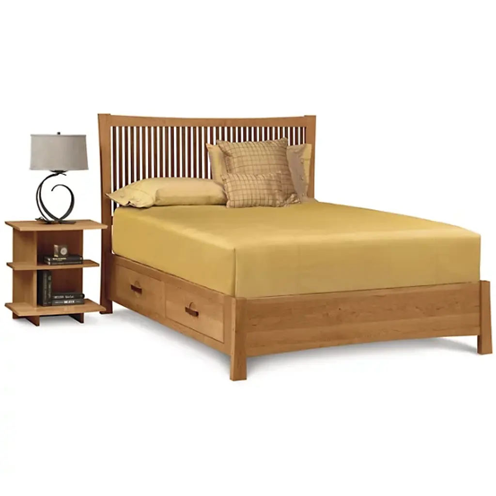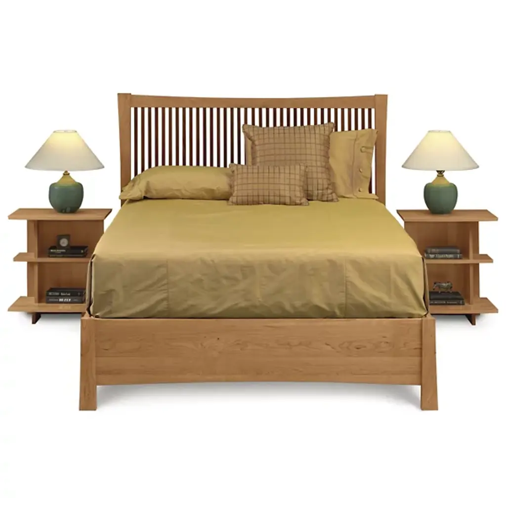 Style on standby. The Copeland Furniture Berkeley Nightstand delivers useful space with immediate access, letting you store your bedside items within reach and in plain sight. In addition to its functional design, the Solid Cherry Hardwood gives the piece beautiful natural coloring and visual texture. Well-placed tiers maximize the available surfaces within the unit, offering plenty of vertical space to store and stack items. The structure is incredibly balanced, using intersecting boards to support the nightstand and divide the different sections. With an impressive ability to do less with more, this bedroom fixture provides loads of usable space and an equal dose of aesthetic appeal.
