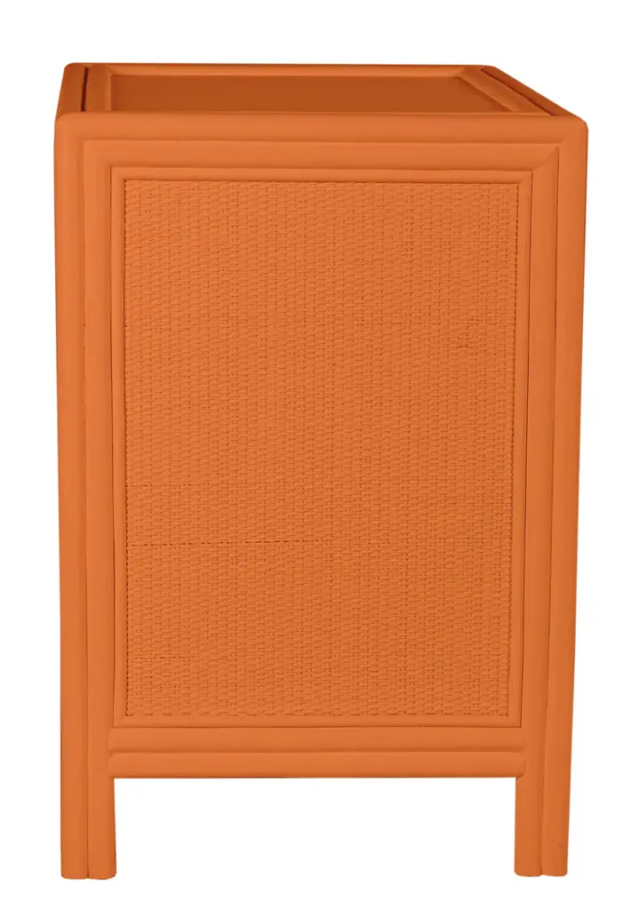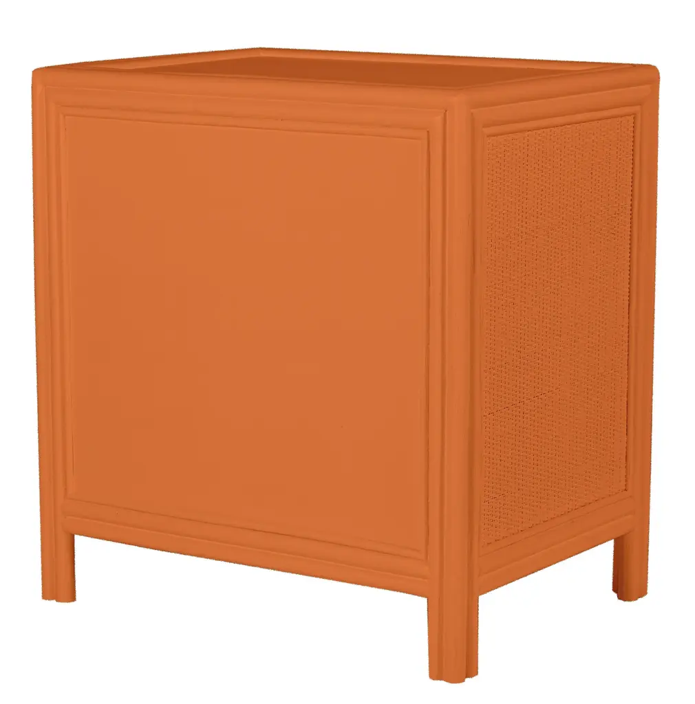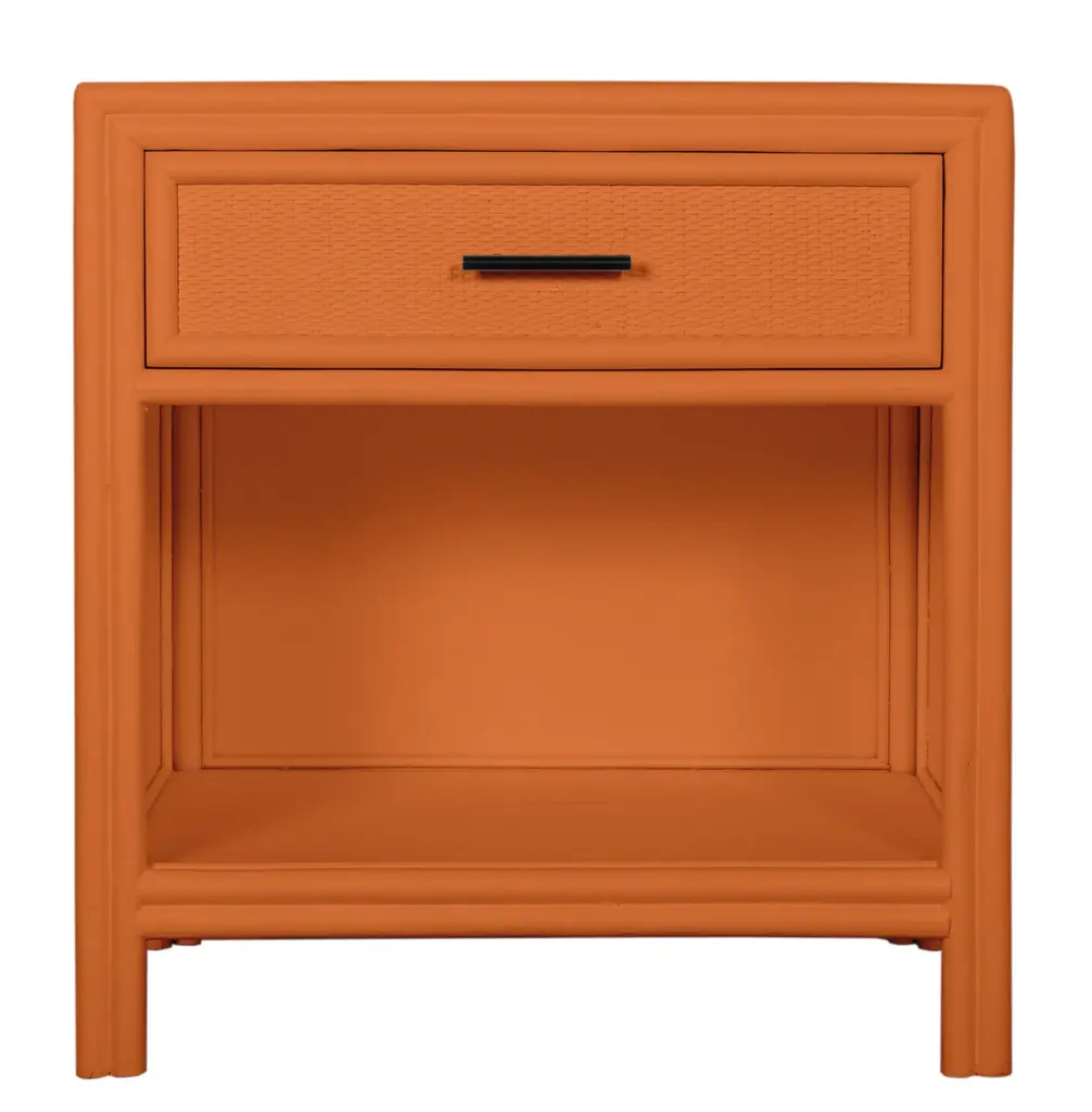 Versatile and highly functional, the Bermuda One-Drawer Nightstand captures the carefree elegance of the Caribbean. Featuring a rattan frame with woven cane on the drawer facings and sides the Bermuda Nightstand promises to compliment any space. The one-drawer nightstand features wooden drawer glides and a metal drawer pull. The nightstand offers plenty of storage, with the addition of an open shelf. The spacious wood top provides a space for decorative accessories or framed photos. Each David Francis nightstand is hand-finished and made to order, please allow time for delivery.