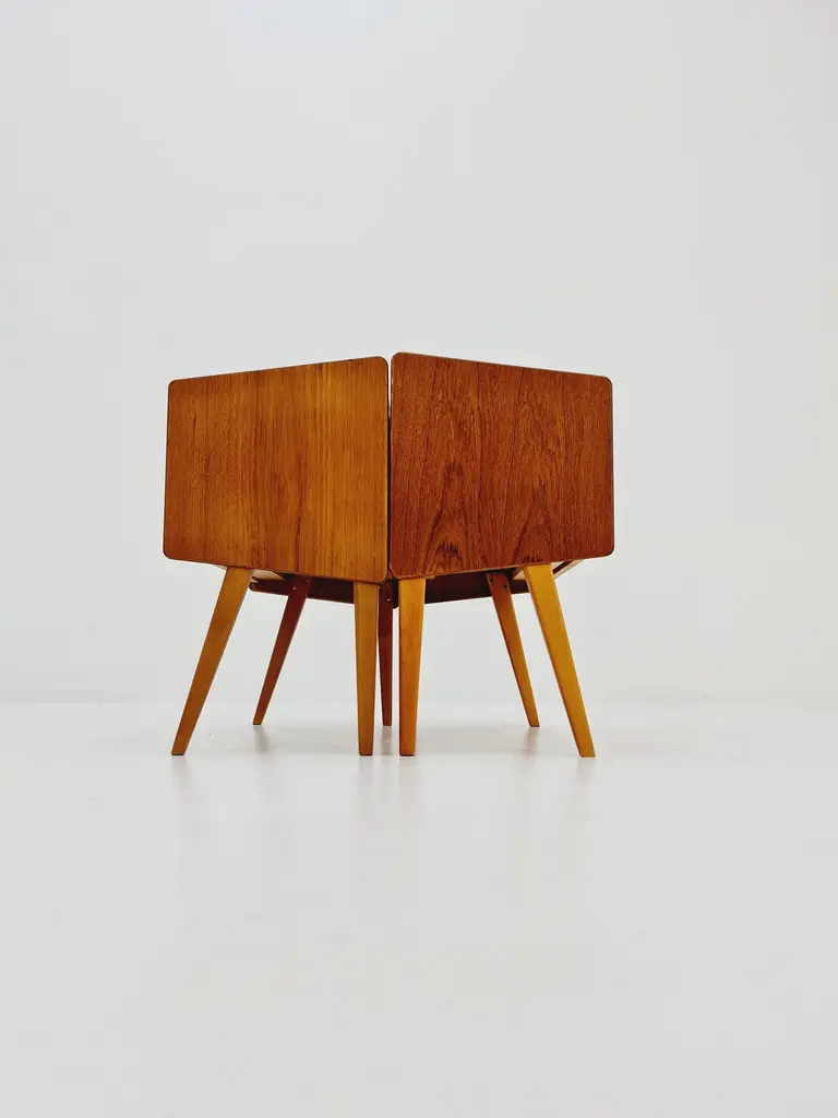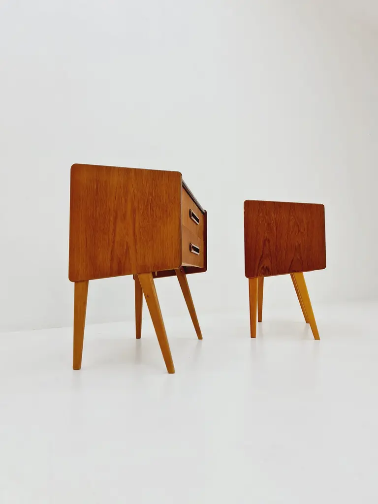 Rare big Midcentury Danish teak Vintage Side table/ Bedside table by Olholm Möbelfabrik, Denmark, 1960s, set of 2 Usable as a additional tables in the living room They are in great vintage condition. However, as with all vintage items some minor wear marks should be expected. See pictures Pictures are part of the Design year: 1960s Dimensions: 34 D x 60 W x 60 H cm
