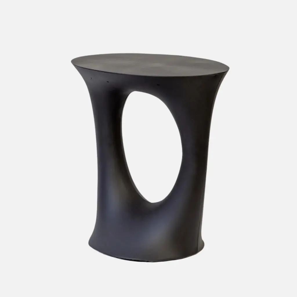 Industrial, organic and sculptural, the Kreten Side Tables are concrete furniture like you haven’t seen before. Original pieces are created in Souda's Brooklyn studio by casting concrete into a spandex mold. The unique material combination delivers forms that are sure to make a statement in interiors and exteriors alike.Short Table: W 15" x L 10.5" x H 17" / W 38cm x L 27cm x H 43cm.Painted Black FinishThe bases of the tables are finished with Industrial felt so they can be used indoors or outdoors.