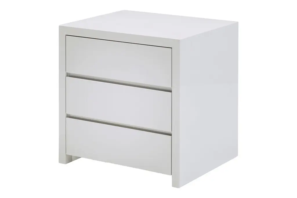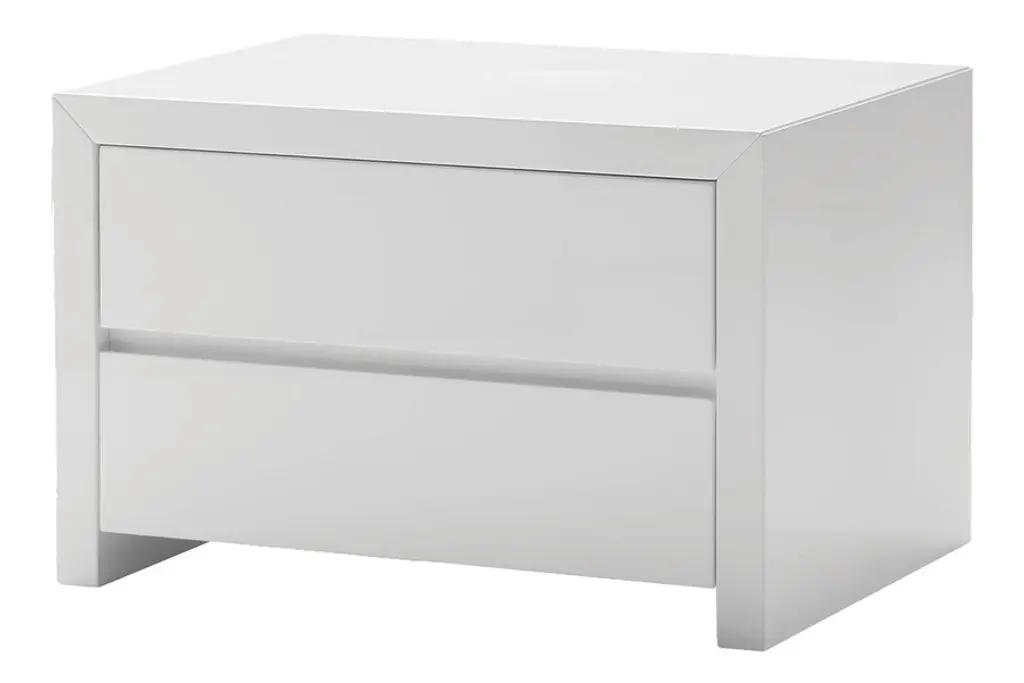 Simple and stylish never looked so good! This nightstand has a simple silhouette that you will absolutely fall in love with when you see it in your bedroom. You choose the two or three drawer version in either beige or white to fit your space. The smooth clean lines and 5-coat glossy finish with miter cut corners is a perfect complement to any dcor.2-Drawer: 24"w x 18"d x 16"h, 55.8 lbs 3-Drawer: 24"w x 20"d x 23"h, 83.3 lbs