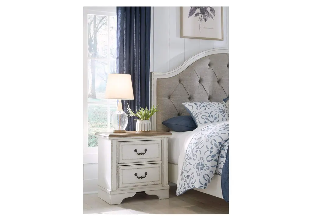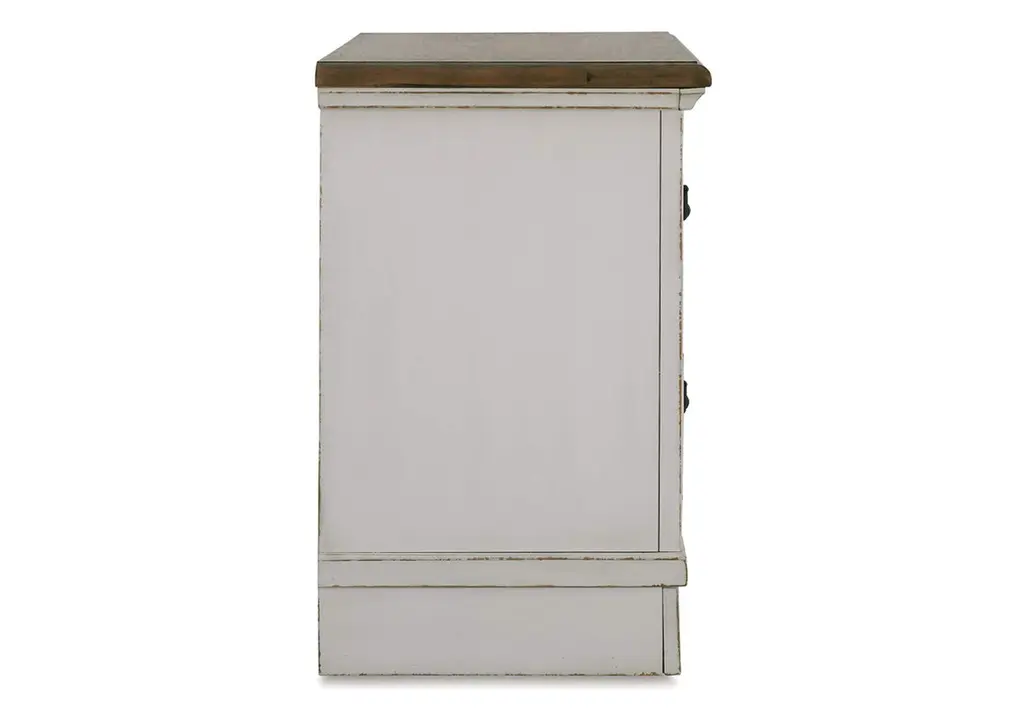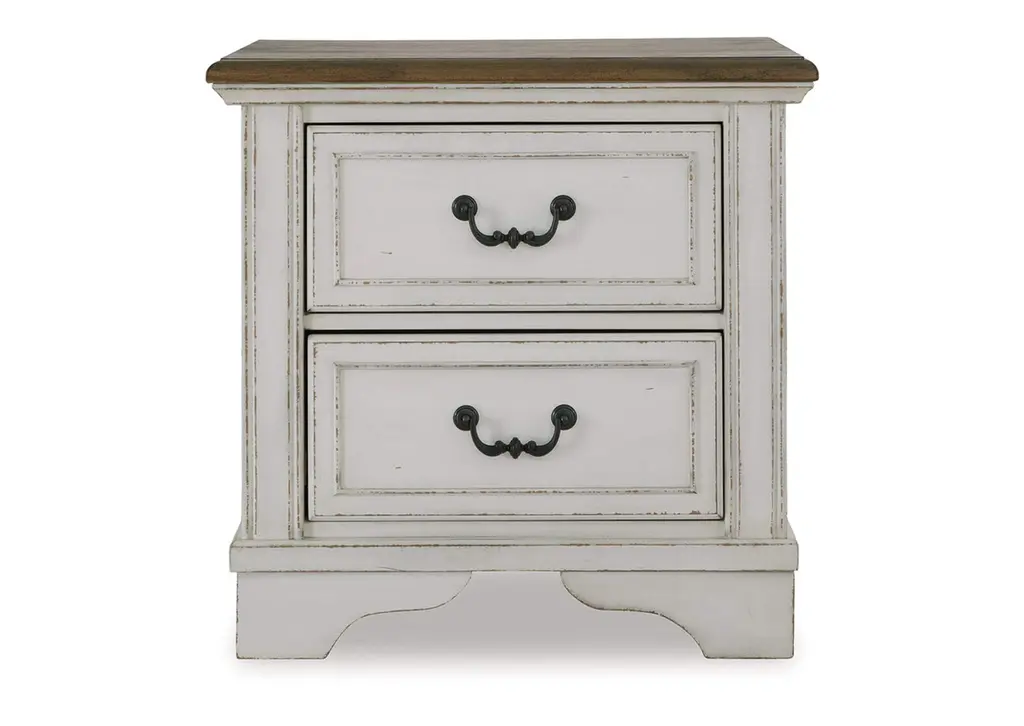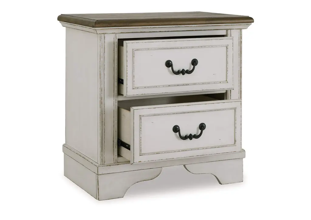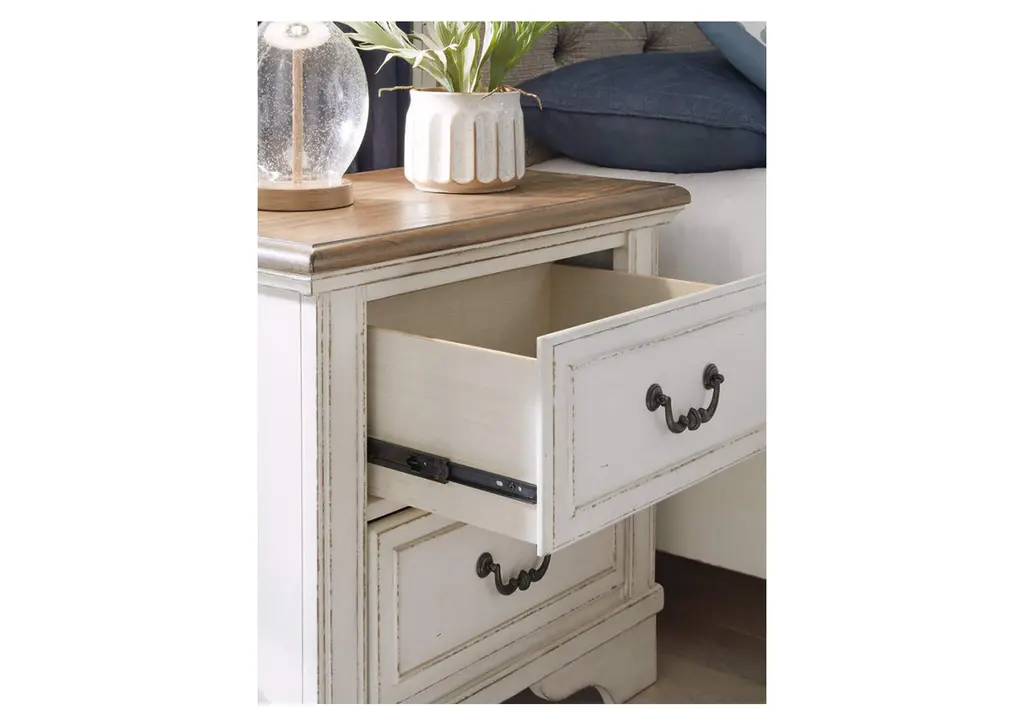 Traditional design. Casual appeal. You can have it all with the Blendon nightstand. A relaxed two-tone aesthetic merges with ornate profiled drawer fronts and pilasters to give this distinctive piece an allure all its own. Expansive drawers with quality dovetail construction and dark bronze-tone hardware reflect attention to detail from the inside out. Weight 66.000 lbs. (29.7kgs.)