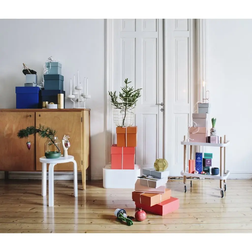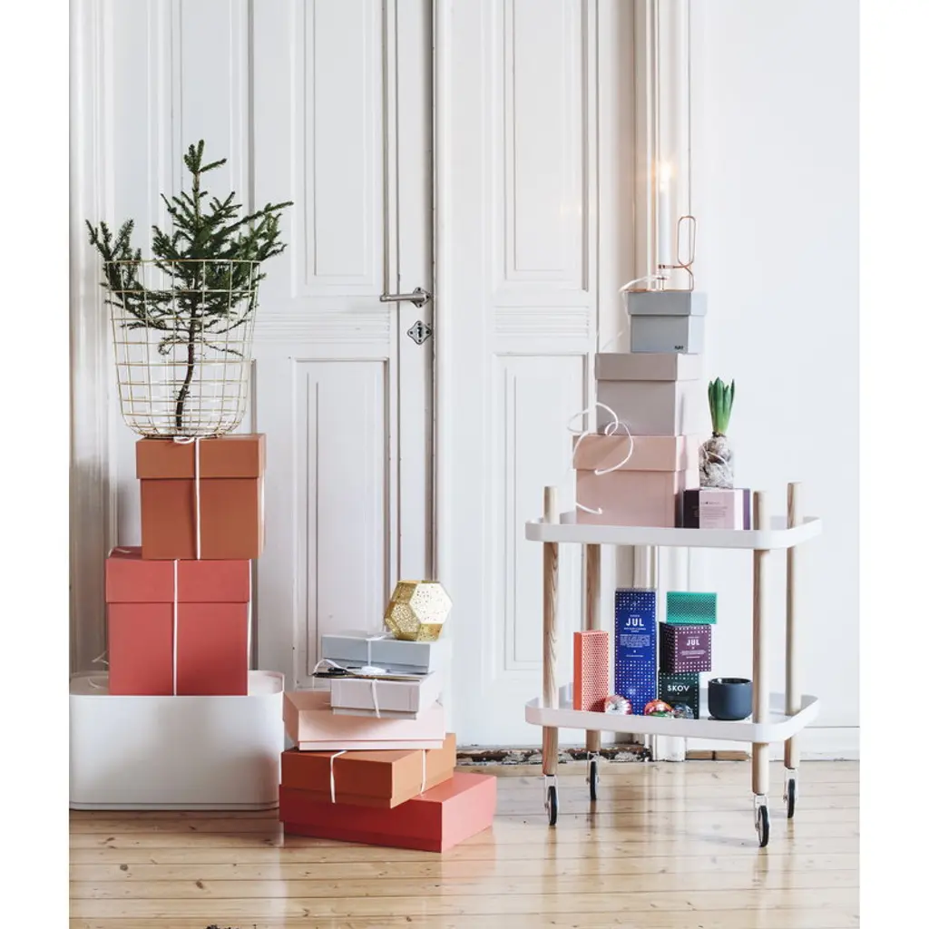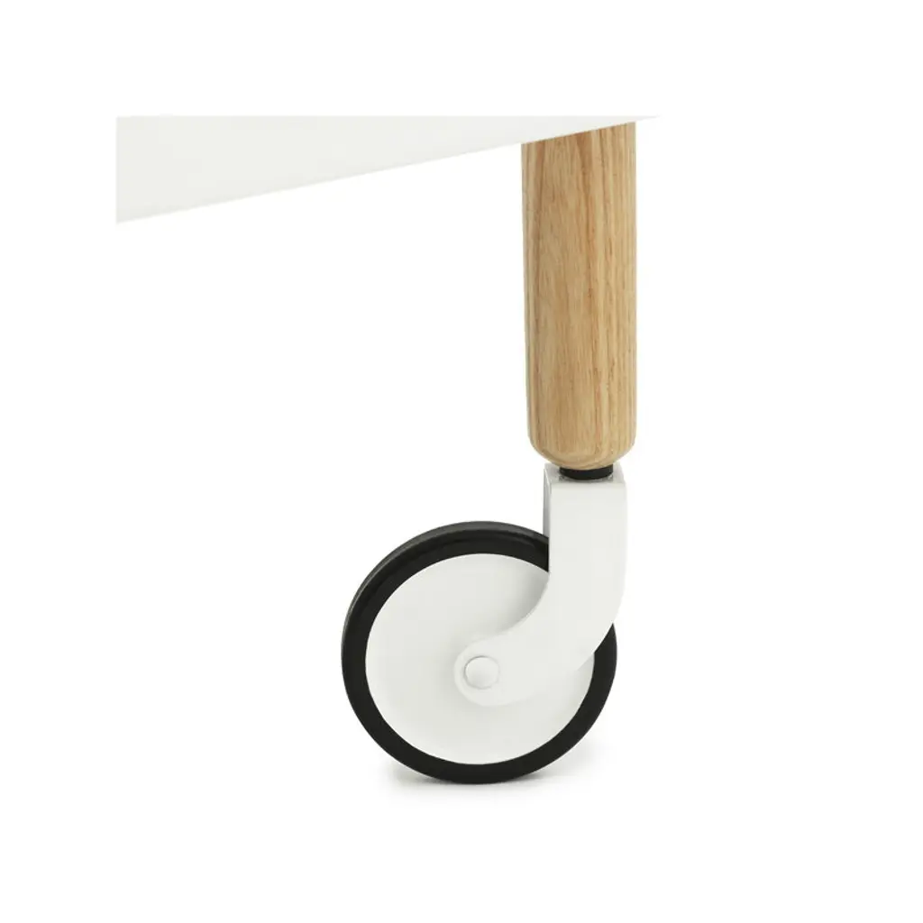 Block, designed by Simon Legald for Normann Copenhagen, is a versatile small trolley that can be used as a tea trolley in the dining room, coffee table in the living room or nightstand in the bedroom. As the Block comes with wheels, it’s easy to move from one place to another. The ash wood frame adds a light and natural touch to the industrial expression of the steel wheels and tabletops. Block is easy to assemble and no tools are needed.