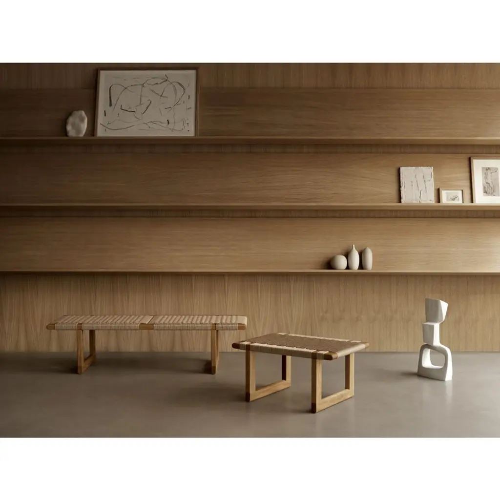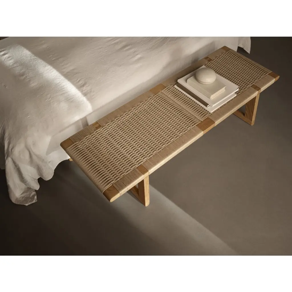 Carl Hansen & Søn's BM0489L bench presents a fresh reinterpretation of the classic table bench, designed by Børge Mogensen in 1958. Versatility is at the very heart of the attractive oak bench – known as one of the greatest Danish designers, Mogensen often created furniture that can be easily adapted to changing life situations and different needs. The long BM0489 table bench can be used in the living room as a coffee table, in the bedroom as a bedside table or in the hallway as a bench for fastening your shoes. Only the sky – or rather your imagination and the walls of your home – is the limit! The graceful table bench is not only suitable for many uses but also for a wide range of different interiors, from Scandinavian minimalist to slightly more maximalist. This is thanks to beautiful details: the oak frame is accompanied by a braided paper cord top and finished with skilful joinery and rounded edges.