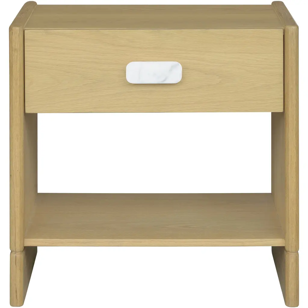 Introducing the Bodo Nightstand, an epitome of minimalist modern style that effortlessly enhances any bedroom decor. Constructed from a rich blend of wood veneer, manufactured wood, and a stunning marble top, this nightstand offers a remarkable balance between functionality and aesthetic appeal. Set on a sturdy oak base for added stability, the Bodo Nightstand is not just an ordinary piece of furniture but an exquisite statement piece that brings a touch of sophistication to your space. Its easy care instructions ensure longevity; simply wipe clean with a dry cloth while avoiding harsh cleaners to maintain its pristine finish. Manufactured in Vietnam, this nightstand is indeed an irresistible blend of elegance and practicality designed just for you!