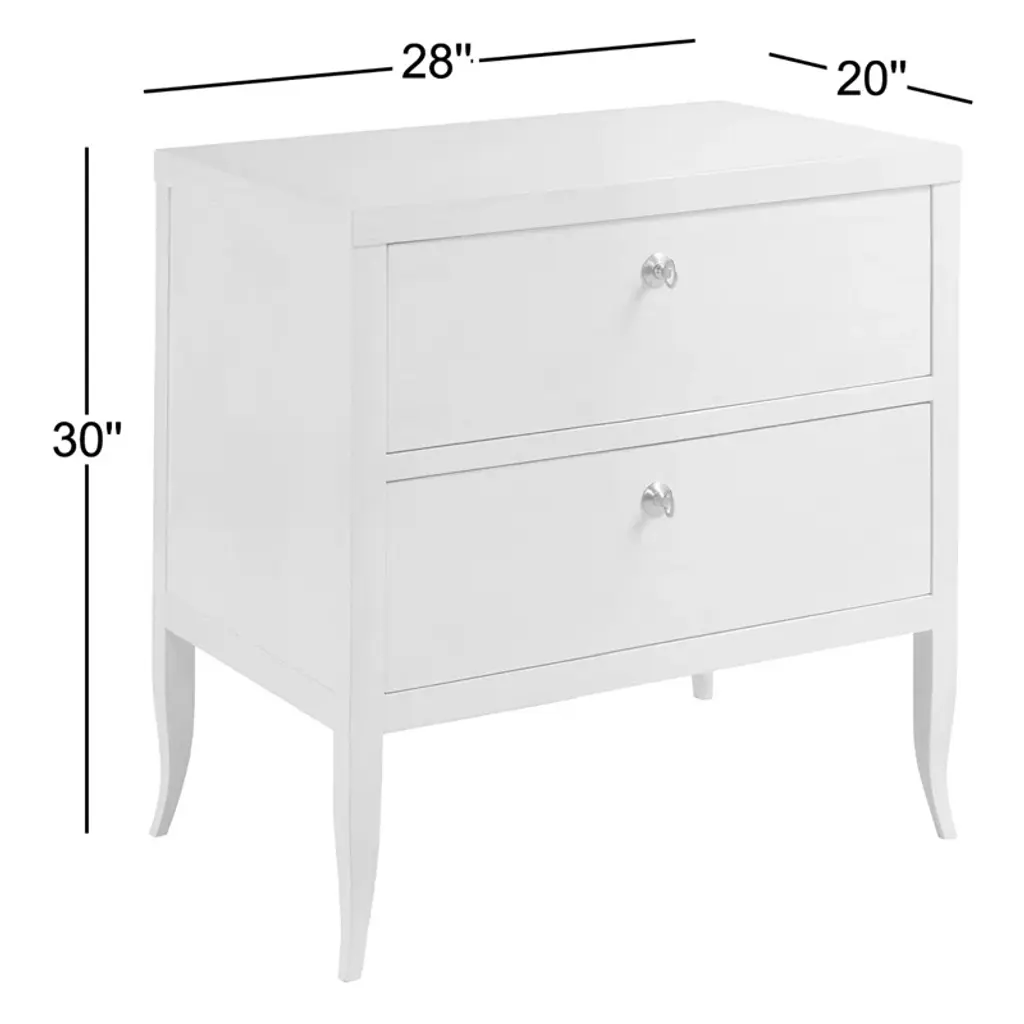 A lovely handy storage chest ideal for bedside is inspired by 18th-century French originals. A rectangular framed top is elevated by squared posts flanking a pair of ample storage drawers. Black tassels are available upon request for an additional $15 per set.