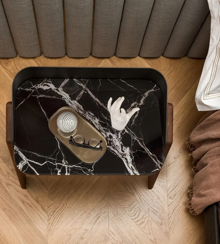 Bravero Walnut And Breccia Imperiale Glass Night Stand By Morica Design