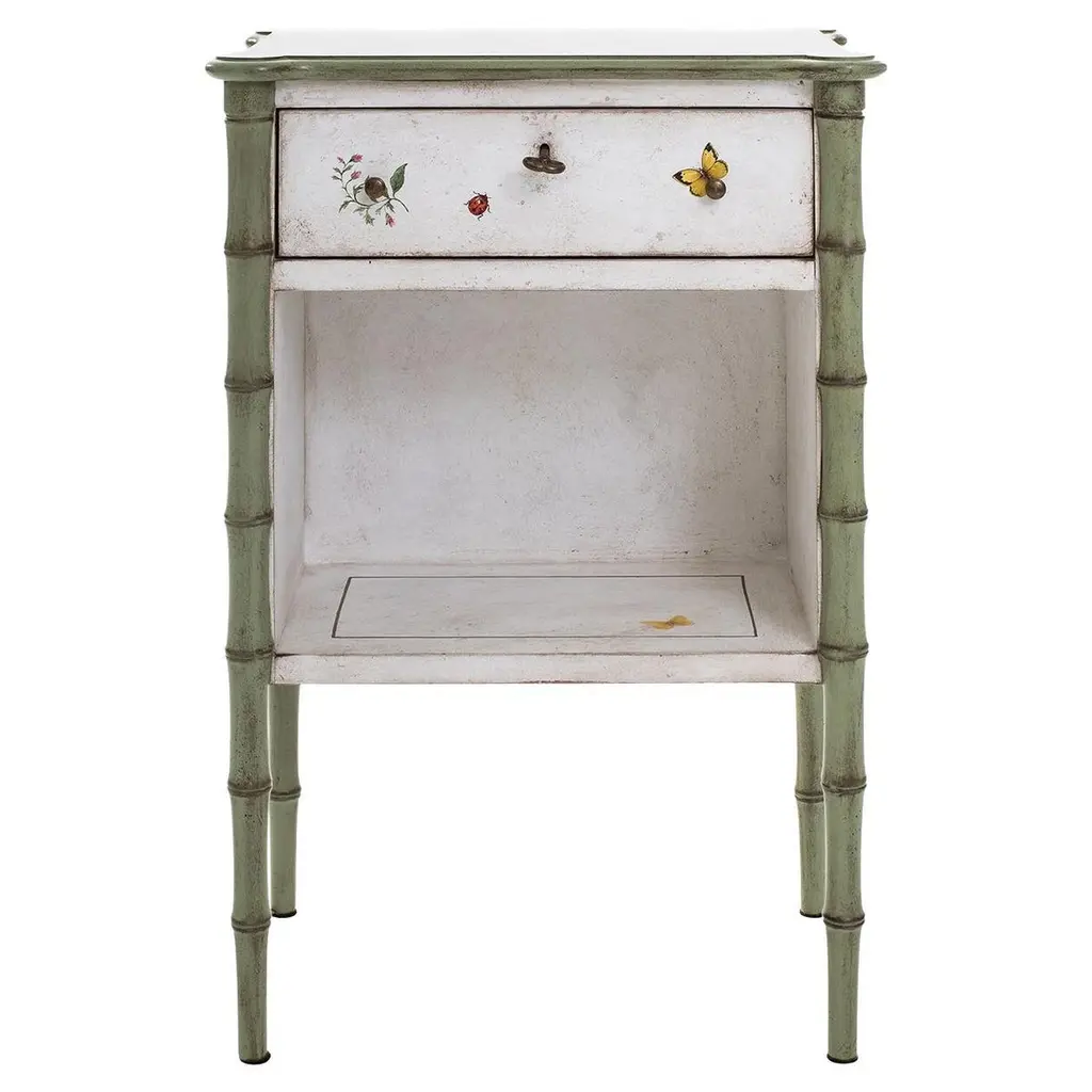 Introducing the elegant Brenta Nightstand, inspired by traditional Venetian furniture from the XVII century. With its gracefully curved legs and spacious drawers, this nightstand combines timeless beauty with practicality. The white finish exudes sophistication, while the delicate monochromatic foliage in a soft ash-purple color adds a touch of charm. Customizable in sizes and designs. Please, ask the Concierge service for further information.