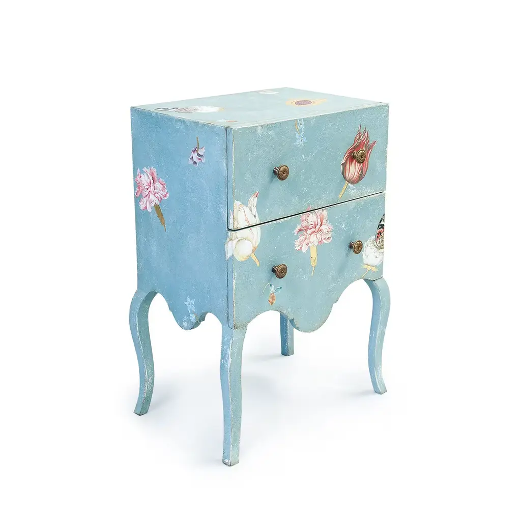 Using Venetian style techniques, the custom made Brenta Nightstand is entirely hand crafted and beautifully decorated. Stylish and charming in design, the colors and decorations can be applied according to the customer's requests in order to perfectly coordinate this piece with existing decor. It is also possible to request extra protection for the top surface if desired.