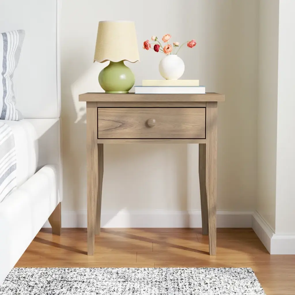 This nightstand borrows inspiration from a classic Shaker aesthetic. Its wooden frame has a dynamic finish, and the single dovetailed drawer provides a handy spot to stash bedtime essentials. Plus, the table top is spacious enough for a reading lamp and a few books. Because of its size, this piece also makes a great accent table in your living room or den.