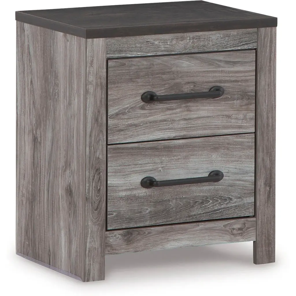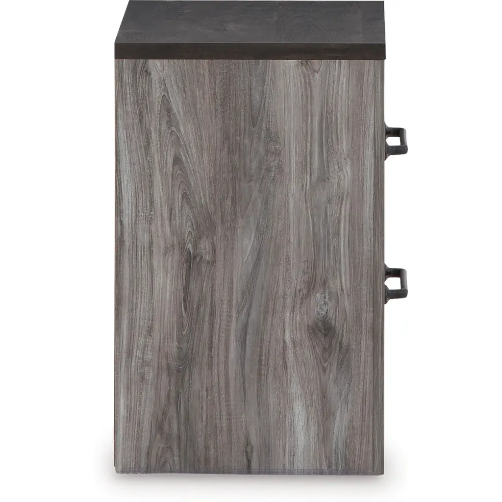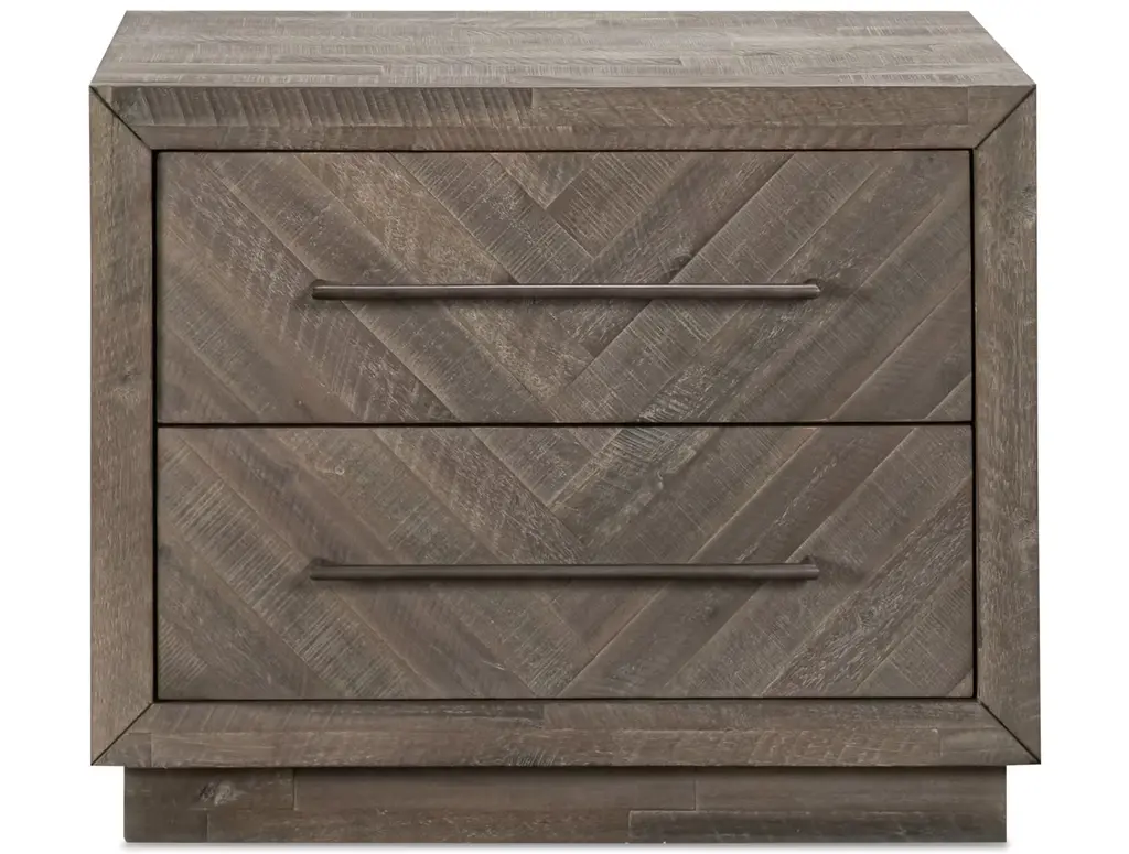 Alluring smoky gray hues create an ambiance that just feels right. This nightstand has a charming wood-like appeal enriched by a two-tone, textured look. Light neutral shades contrasted by a dark charcoal finish bring a refined yet relaxed feel to contemporary decor and a sense of serenity to your space.