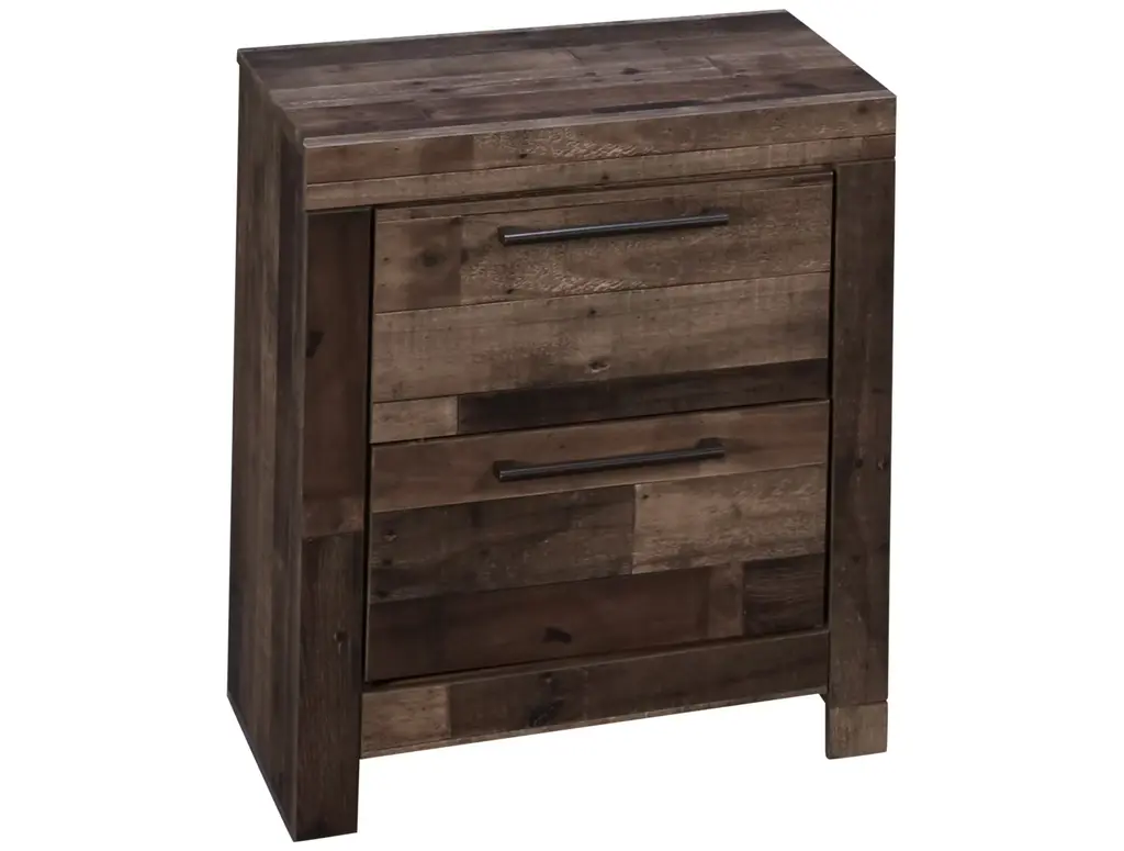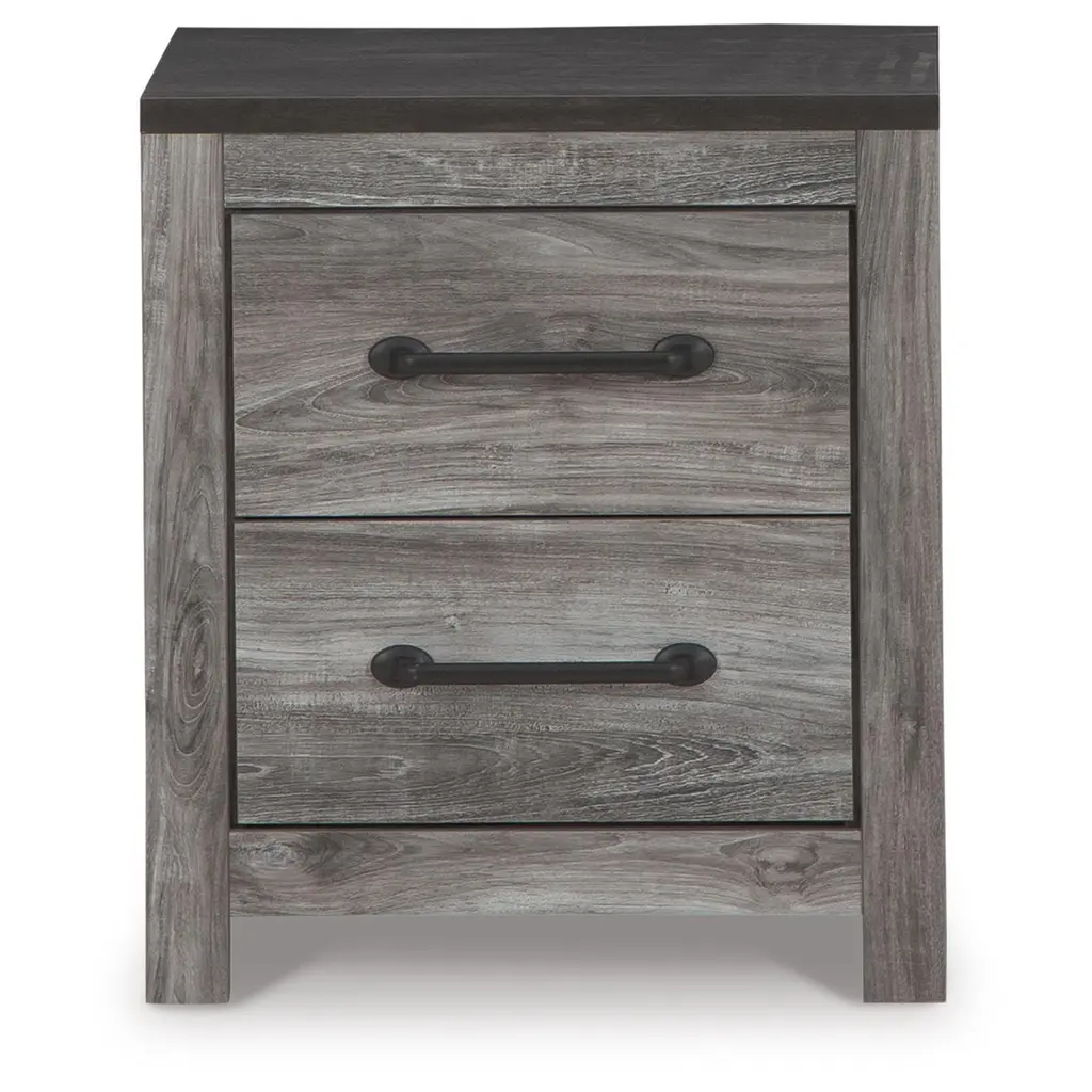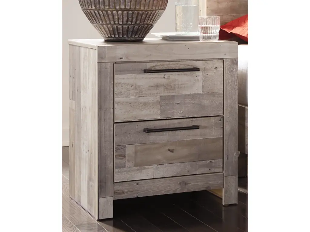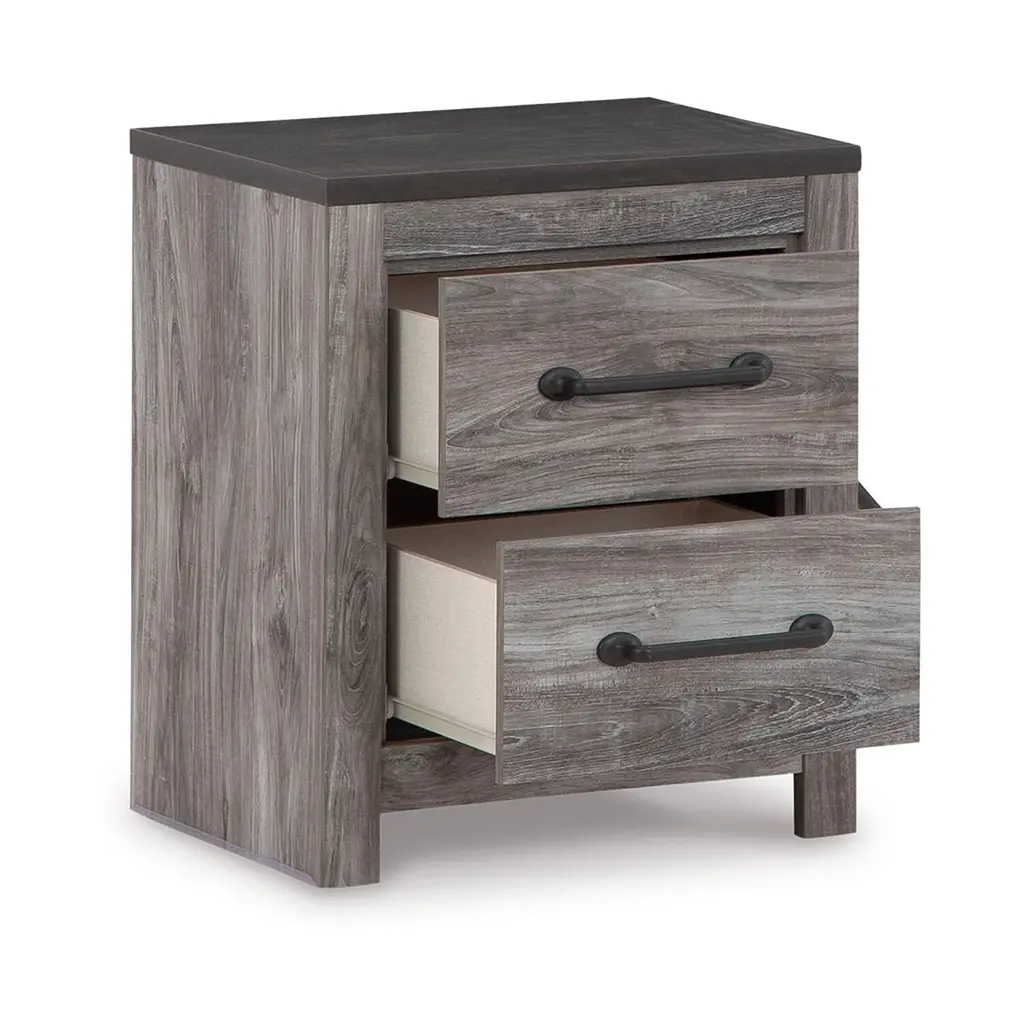 Alluring smoky gray hues create an ambiance that just feels right. This nightstand has a charming wood-like appeal enriched by a two-tone, textured look. Light neutral shades contrasted by a dark charcoal finish bring a refined yet relaxed feel to contemporary decor and a sense of serenity to your space.