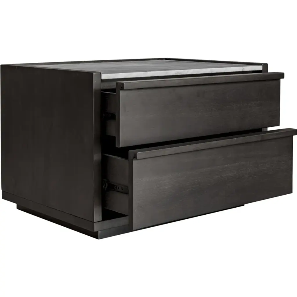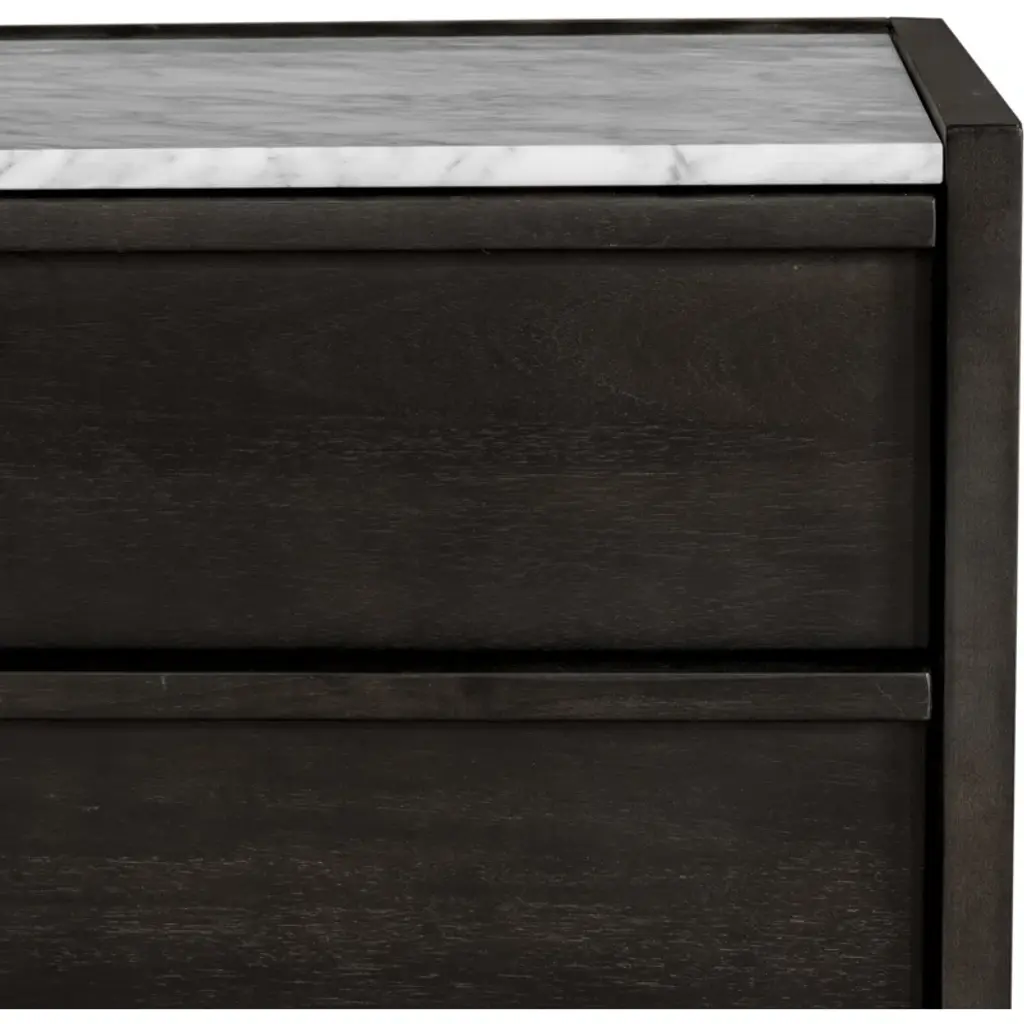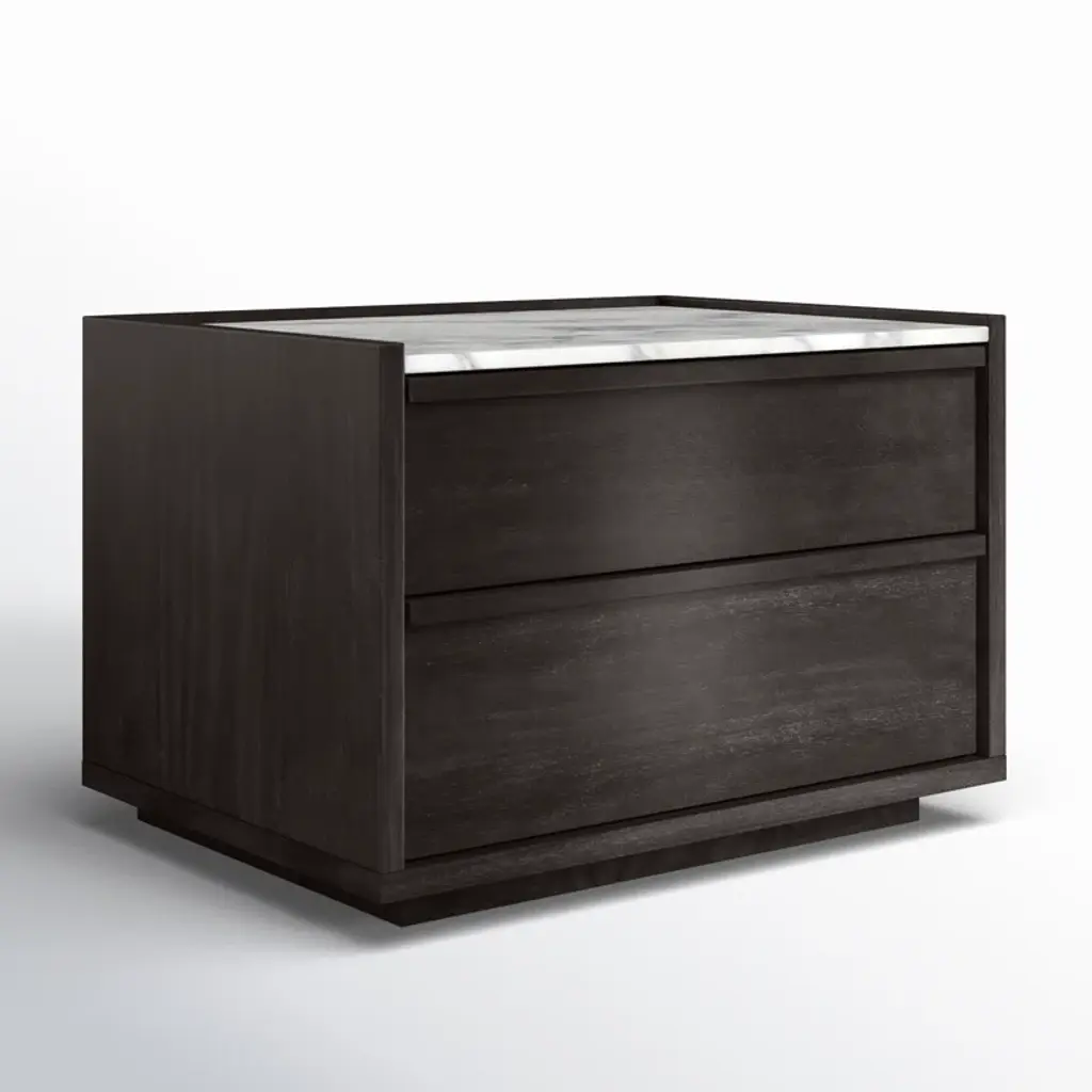 With its sleek mixed-material design, this 2-drawer nightstand is perfect for making a statement in bedrooms of all styles. It's made from solid and engineered wood with a rich dark gray finish that's versatile enough to complement all sorts of different color palettes. Its 2 soft-close drawers are set on ball-bearing glides for smooth opening and closing, so it's easy to access all your bedtime essentials whenever you need them. This nightstand is topped off with a white marble table for a trend-forward touch that's sleek and sophisticated.
