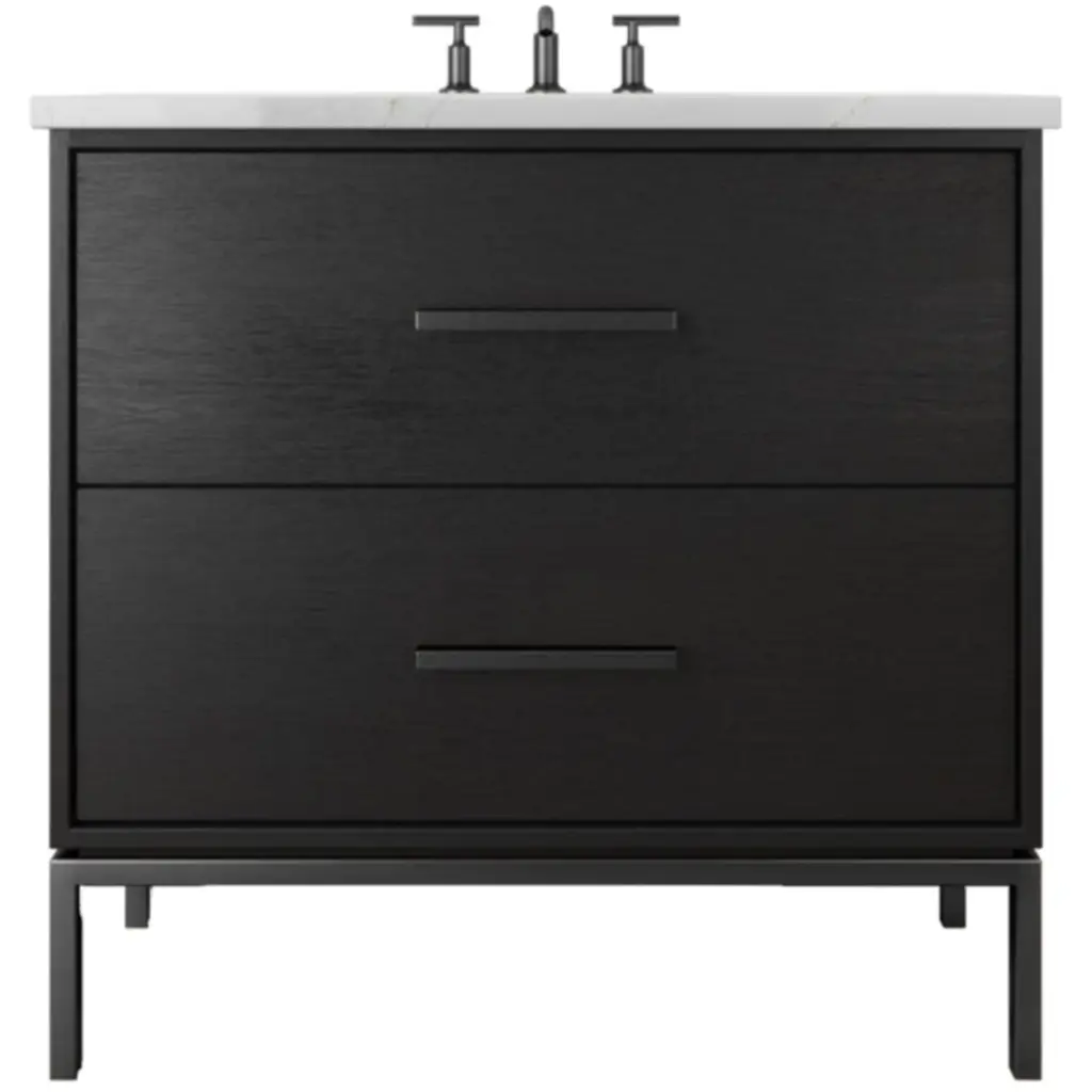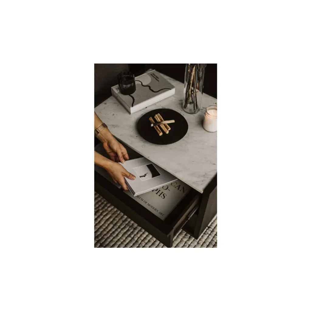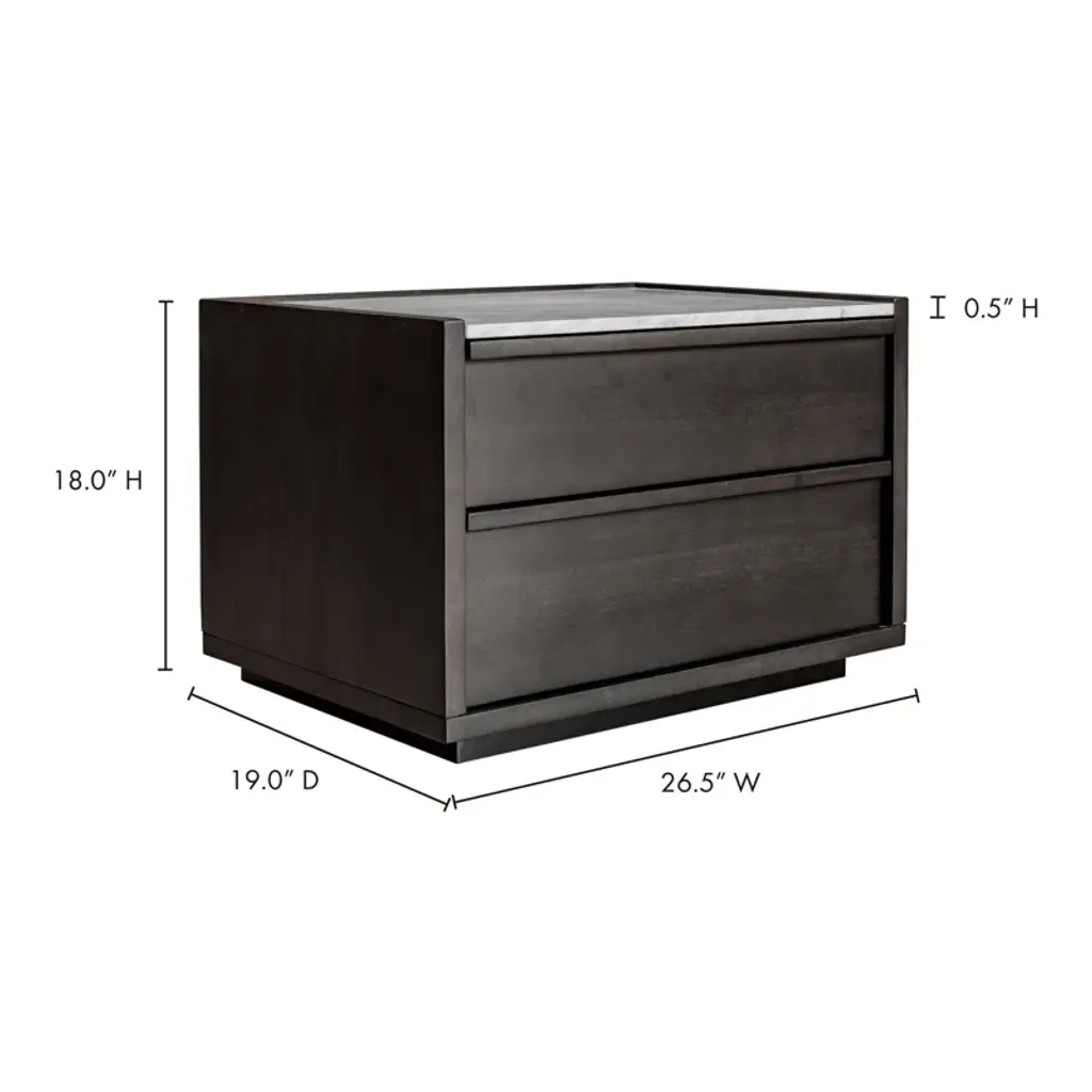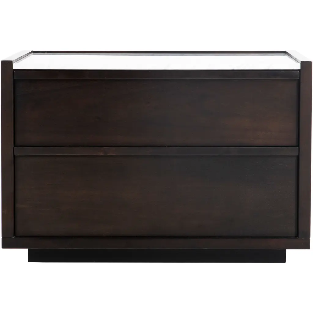 With its sleek mixed-material design, this 2-drawer nightstand is perfect for making a statement in bedrooms of all styles. It's made from solid and engineered wood with a rich dark gray finish that's versatile enough to complement all sorts of different color palettes. Its 2 soft-close drawers are set on ball-bearing glides for smooth opening and closing, so it's easy to access all your bedtime essentials whenever you need them. This nightstand is topped off with a white marble table for a trend-forward touch that's sleek and sophisticated.