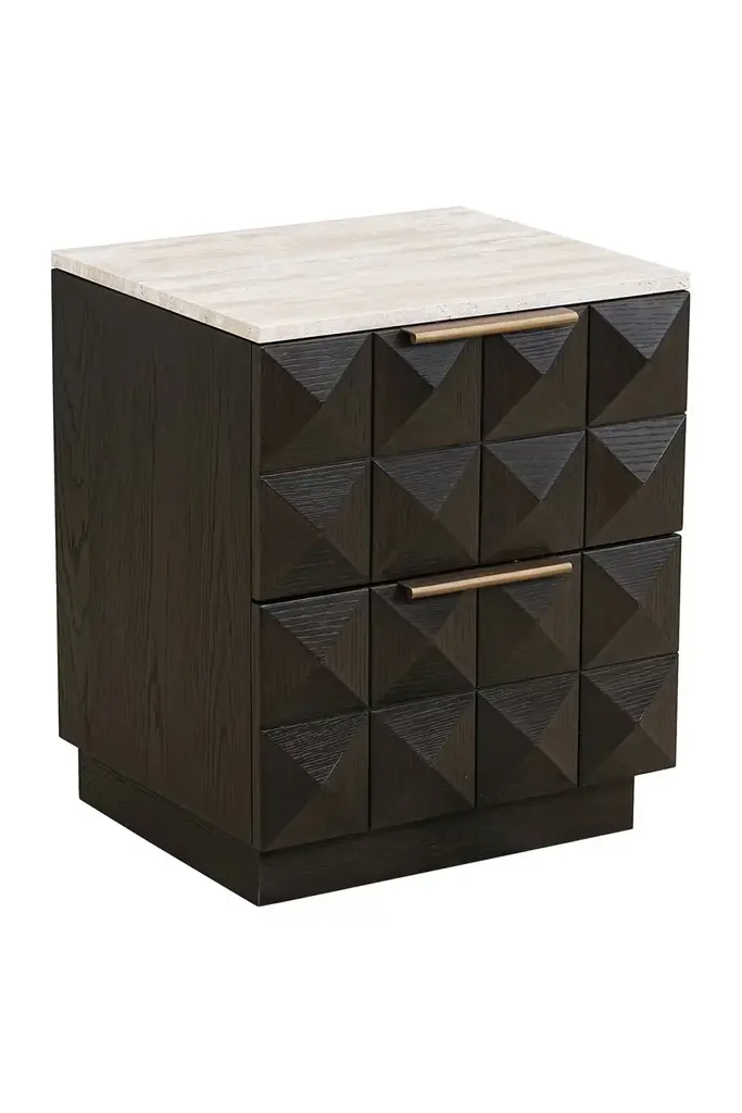 Add a touch of luxury to your bedroom with the Brown Oak 2-Drawer Nightstand from Richmond Interiors Claremont. Crafted from premium oak wood and stone, this nightstand boasts two drawers for storage and a sophisticated design that will elevate any room. Experience the ultimate in elegance and functionality with this exclusive piece.