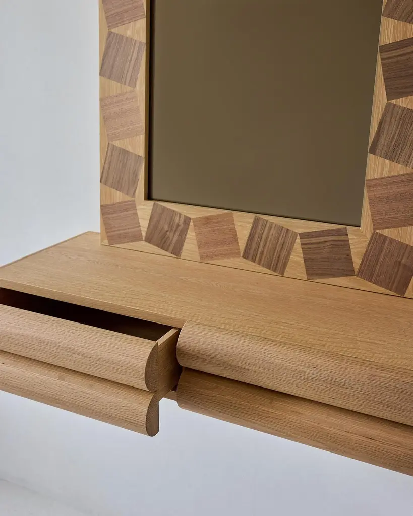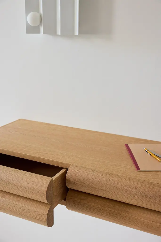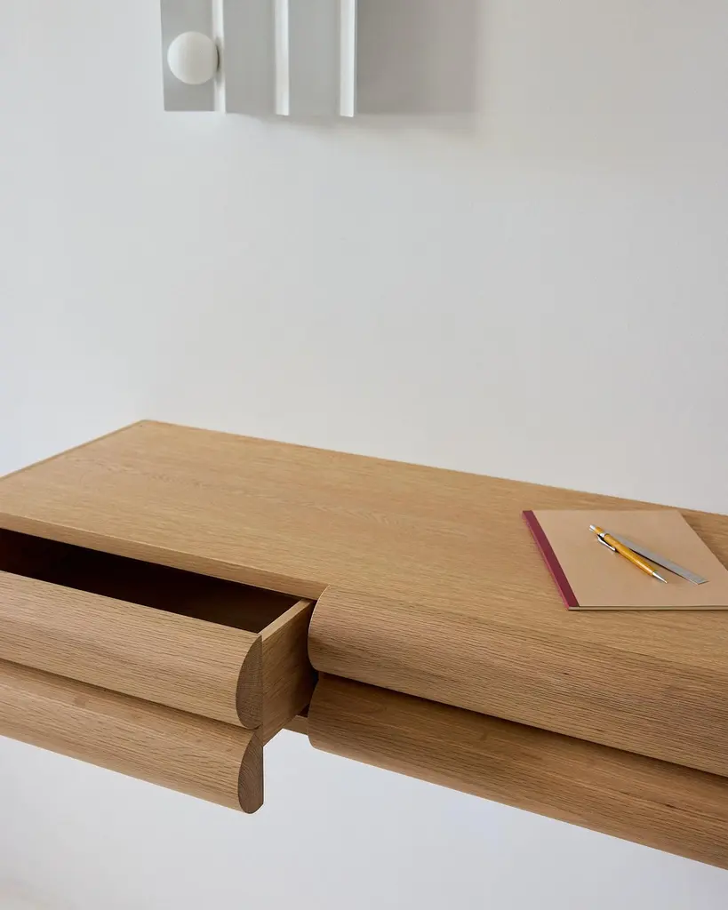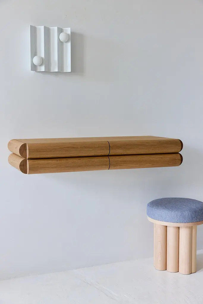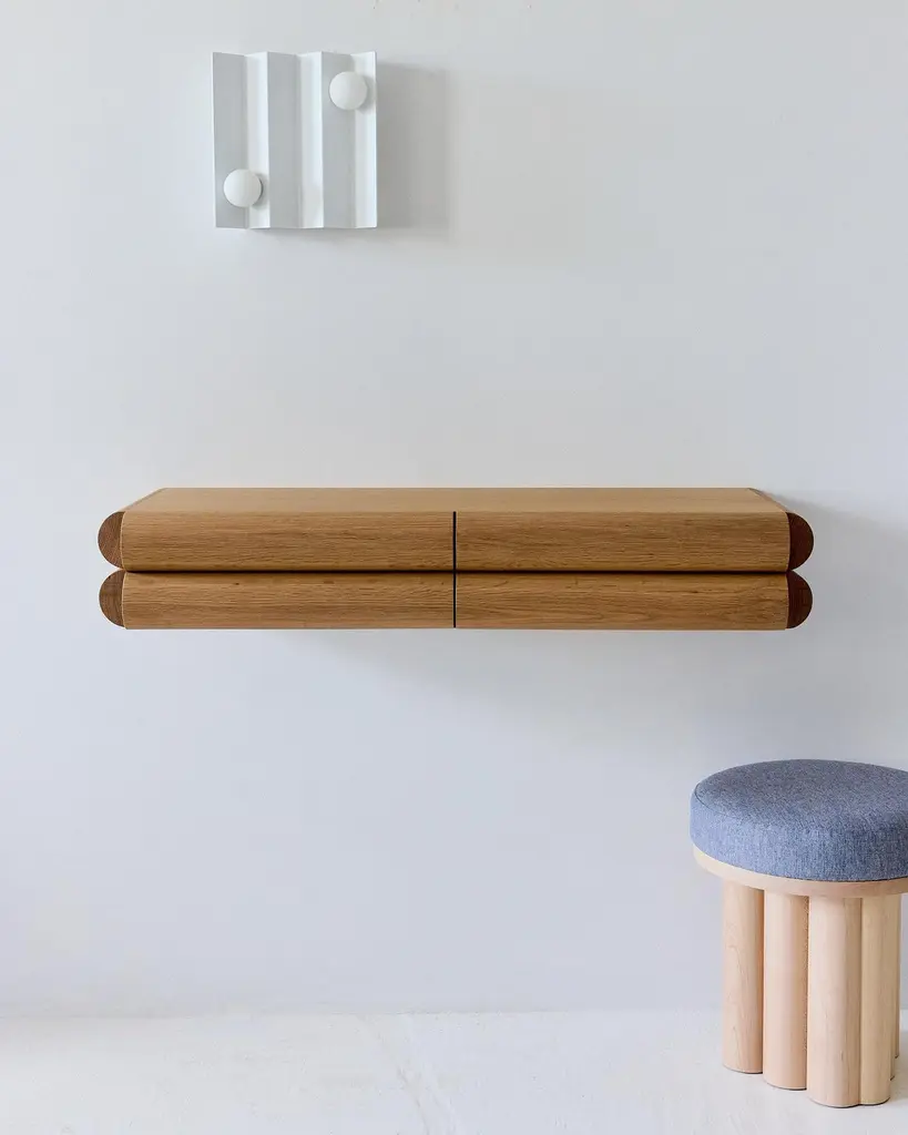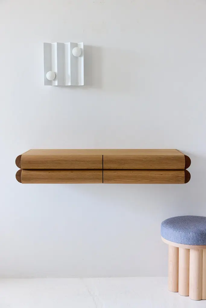 Bubble Floating Console (Large) – Modern Wall Mount Oak Entry Console W/ Drawers